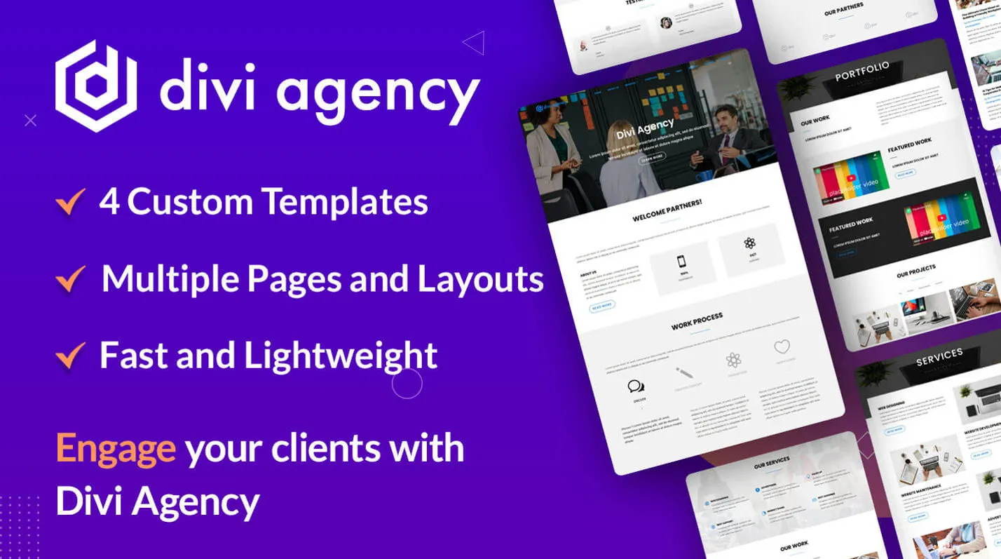 Professional Divi child theme for agencies—includes sleek layouts, animations, and responsive design.