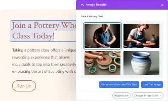 - **Generate Images Automatically: **Just click one button and let Divi AI create images for you. It learns from your page and the context around your image to generate something highly relevant on-demand.