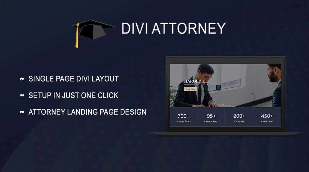 ‘ Divi Attorney ‘ is single page layout for all legal business that includes ‘ Attorney or Law ‘ professionals. This is perfect for any individual / company who want to create effective landing page for their ‘ Attorney & Law ‘ websites. This single page layout have all the sections needed for any legal industry.