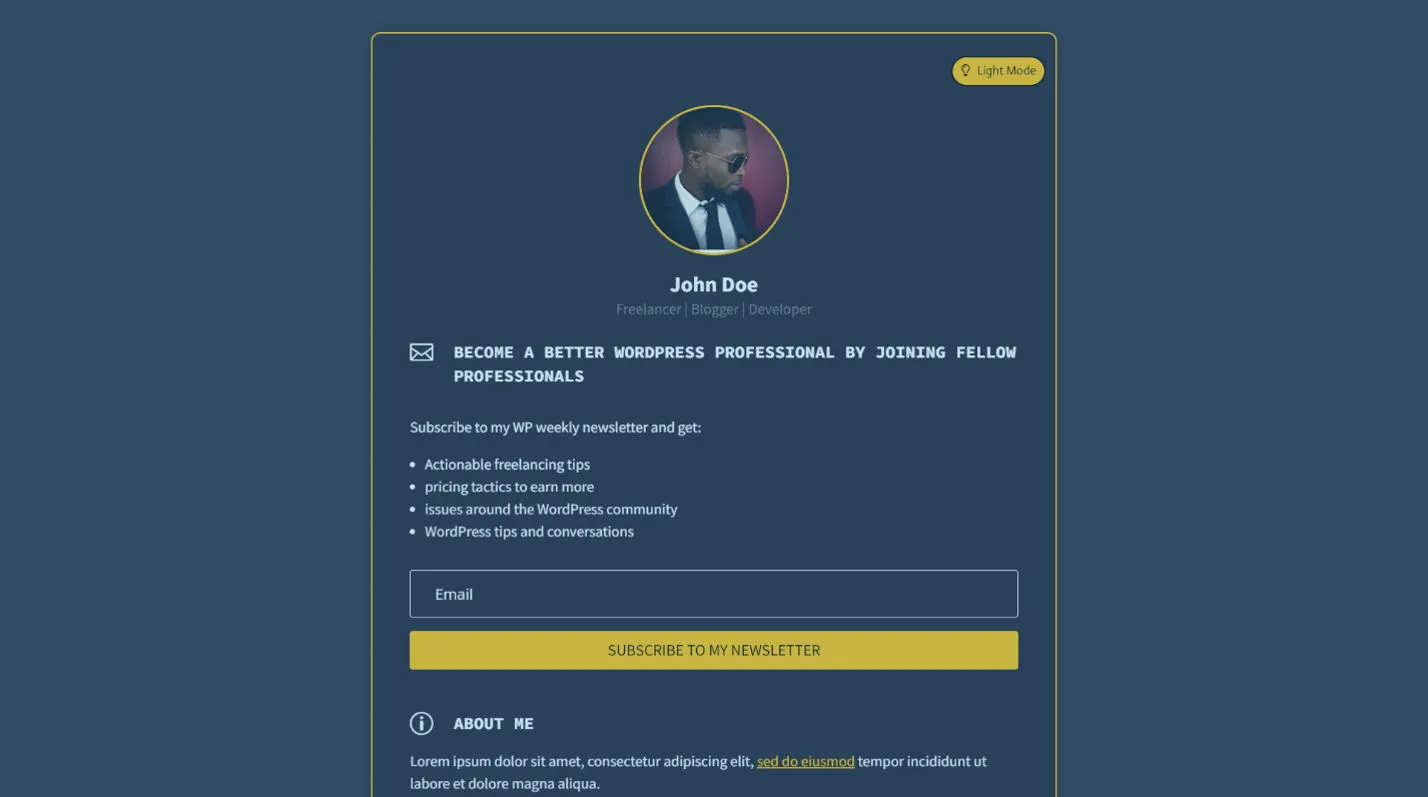 Divi Bio Link Layout provides a quicker way for website designers, freelancers, developers, writers and business owners a way of coming up with a clean and stylish bio link page design. It is that time to ditch Linktree and start using what gives you the freedom to create just anything you want. The layout is plug and play… meaning, all you have to do is import the layout into your Divi website and then load it onto your page. Just like that. It is a set of two pages, the light mode and the dark mode.