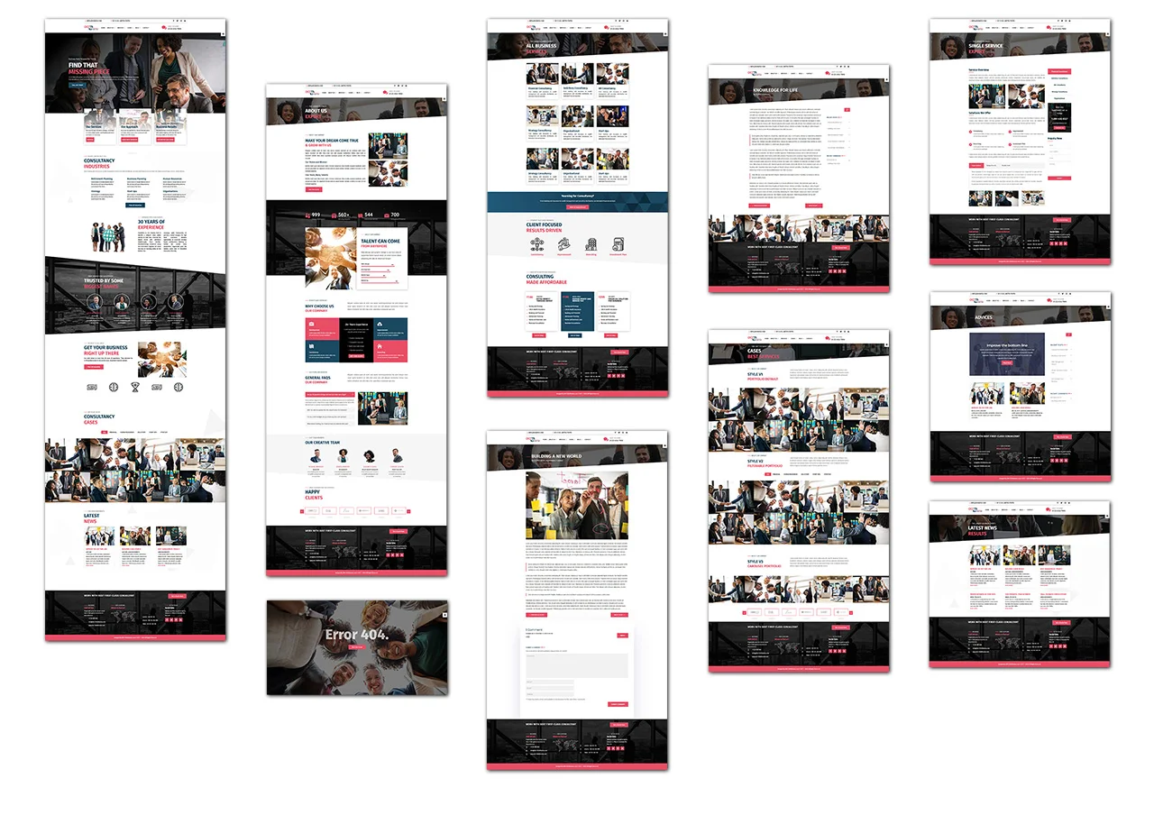 - Business-Focused Layouts: Includes homepage, services, about, and contact pages.