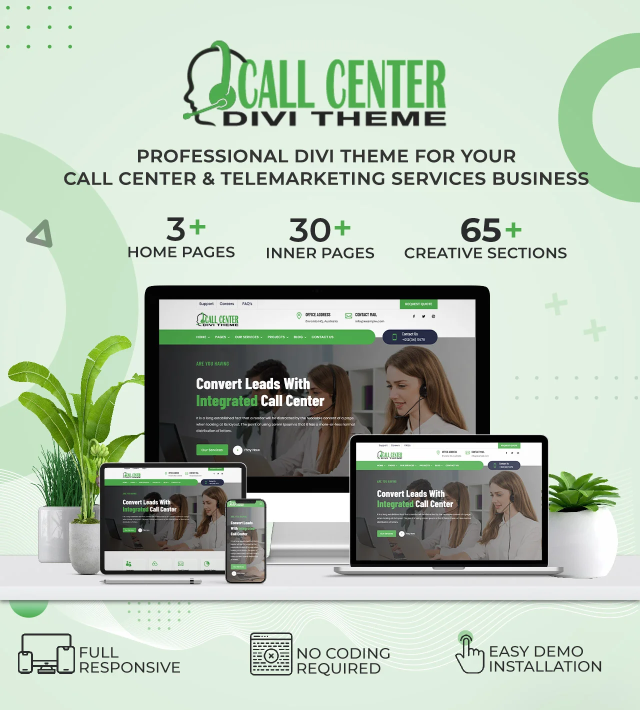 Professional Divi theme for call centers and customer support teams, designed to streamline service presentation and lead generation.