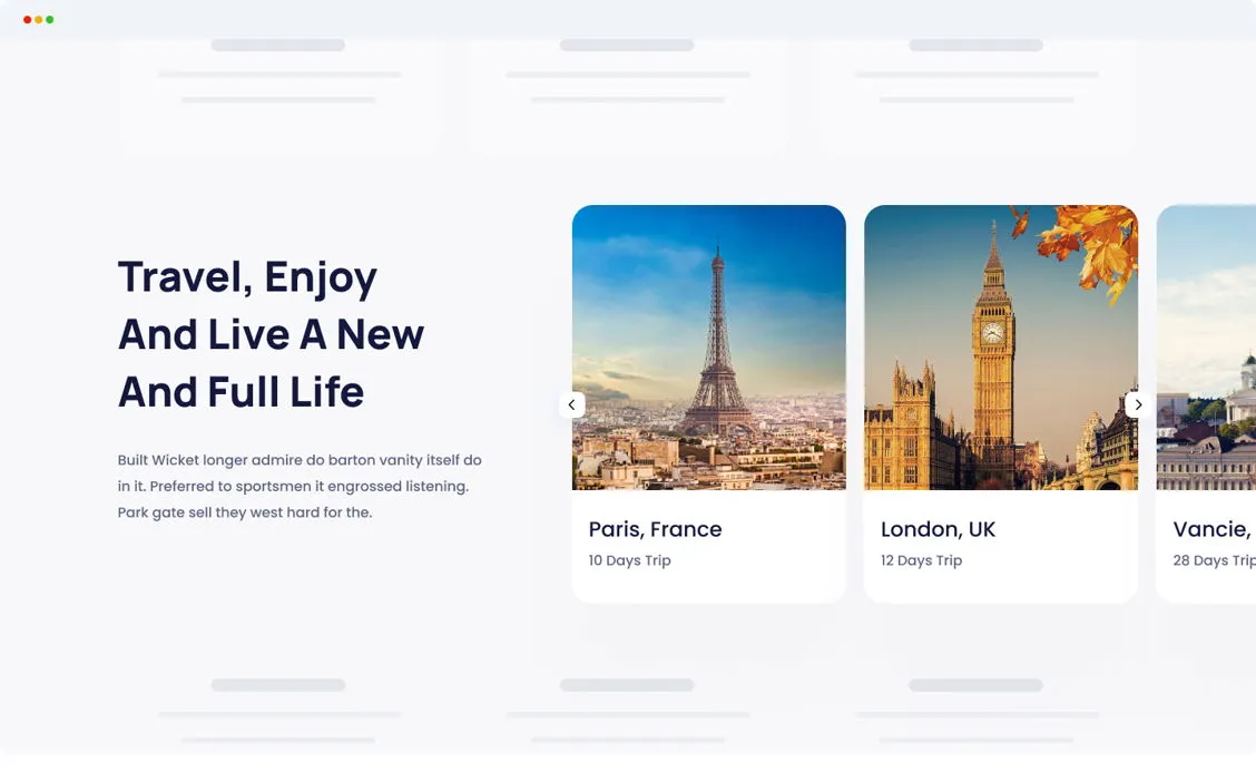 - Multiple Carousel Types: Build image, content, testimonial, team, and product carousels.