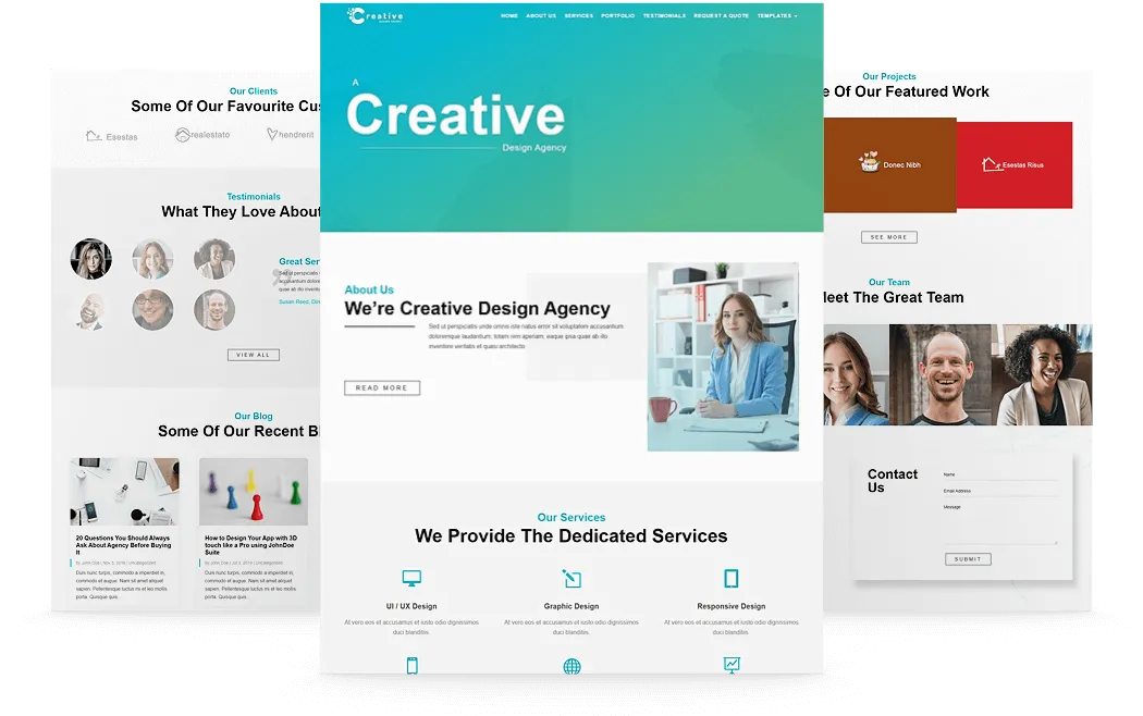 - Agency-Focused Layouts: Includes homepage, services, portfolio, and contact pages.