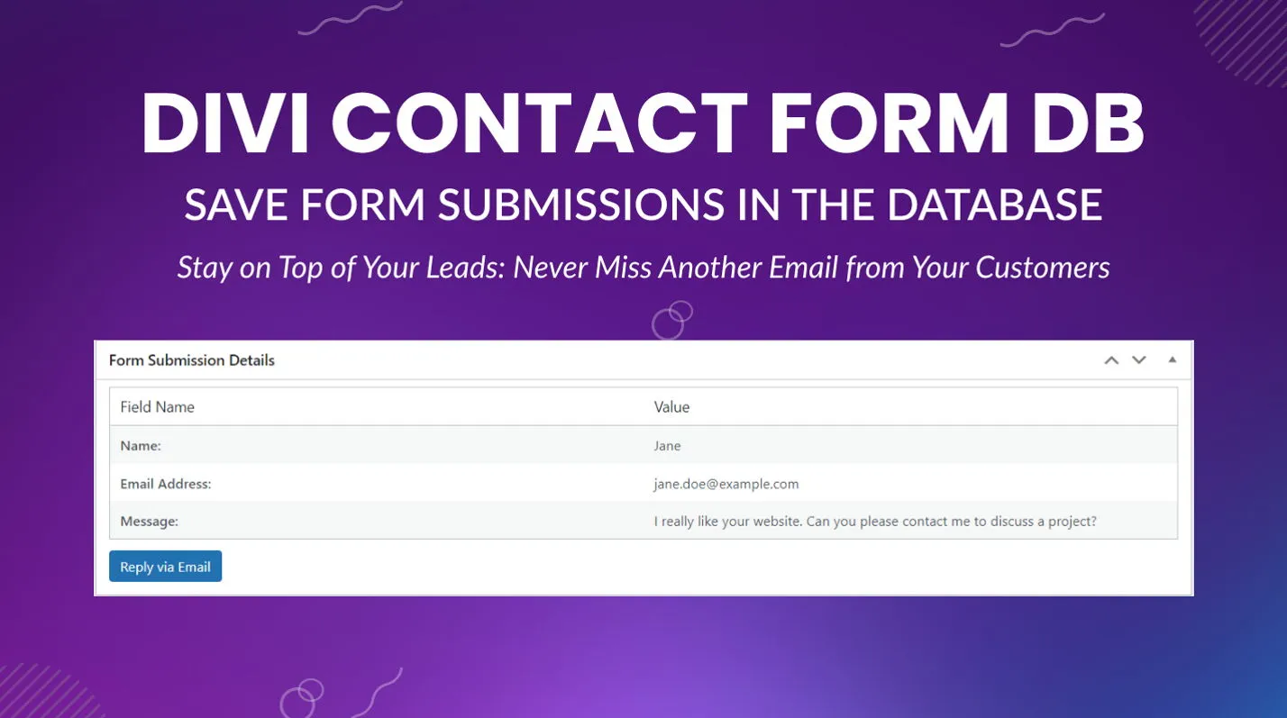 Easily manage and store your Divi contact form submissions with Divi Contact Form DB.