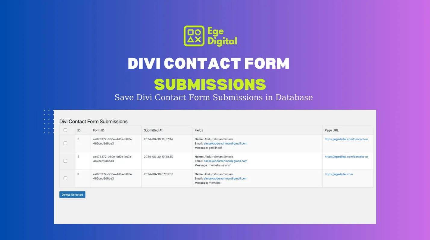 Introducing the Divi Contact Form Submissions plugin, a robust tool designed to streamline the management of form submissions on your WordPress site. Upon installation, this plugin seamlessly integrates into your WordPress dashboard, adding a dedicated “Divi Submissions” menu. Here, you can effortlessly access and oversee all form submissions received through Divi forms. Every time a visitor submits a form on your website, whether it’s a contact request or a signup form, the plugin automatically stores comprehensive data within the “Divi Submissions” section. This centralized approach simplifies the task of tracking and handling submissions using familiar WordPress management features. Key features include capturing and storing all submitted form data, including newly added fields without requiring manual configuration. Each submission records essential details such as the originating page URL and timestamp of submission, ensuring you have a complete overview for effective follow-up and analysis.