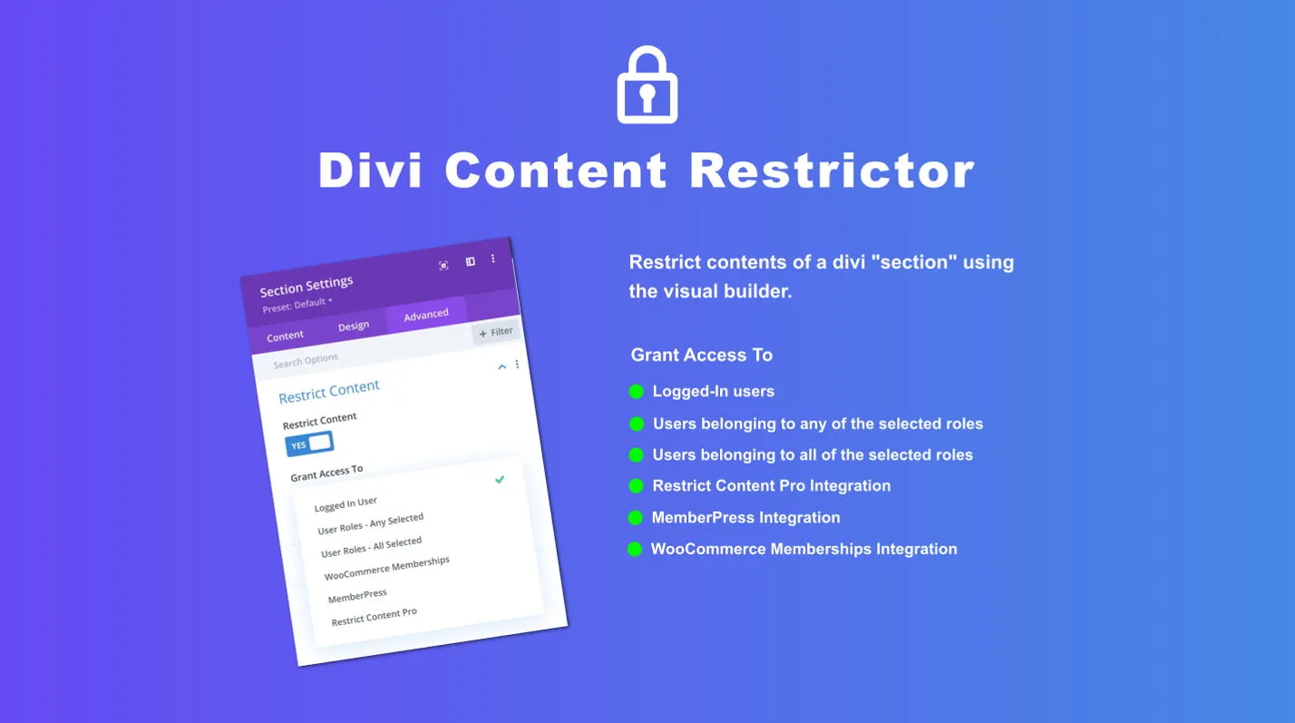 Control who sees your Divi content with powerful restriction rules—perfect for memberships, courses, and gated content.