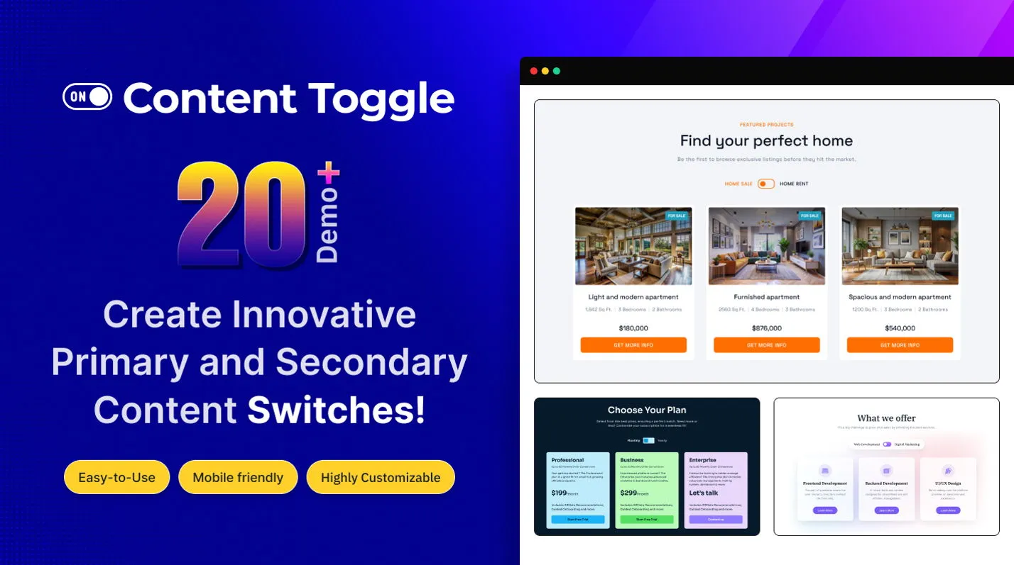 - Dual Content Display: Toggle between two layouts or content blocks with a single click.