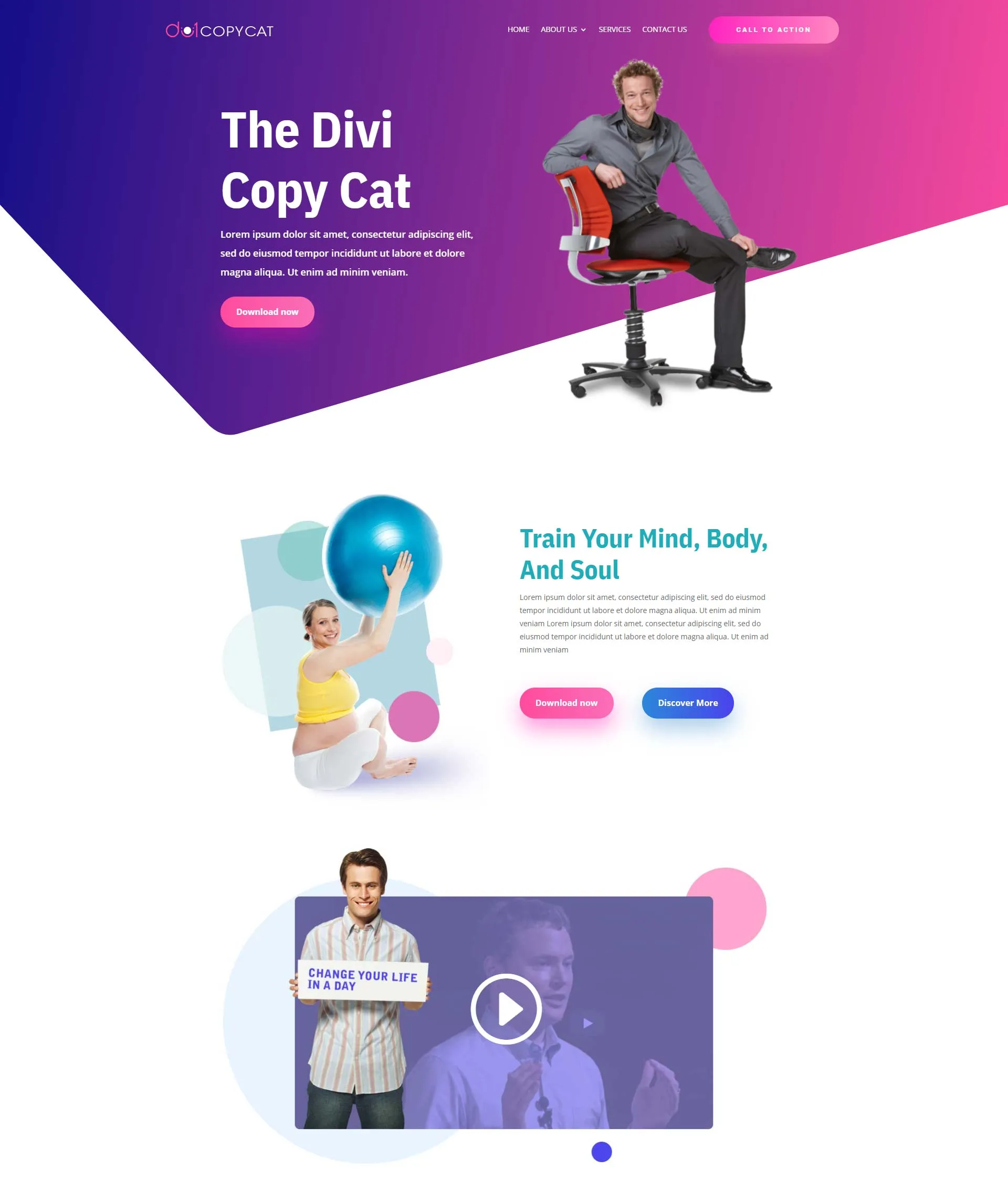 The color of Divi Copy Cat Homepage layout was made to attract users to your website and was designed as a personal portfolio for life coach, yoga training, and small online training website.