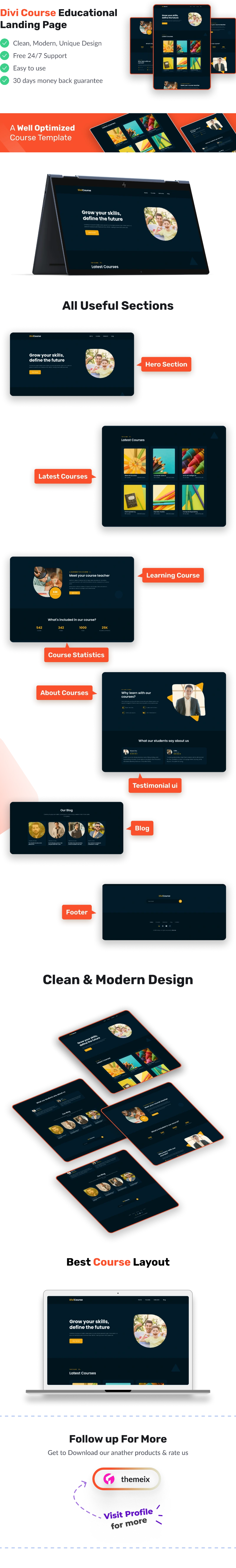 - Course-Focused Design: Tailored layouts for showcasing course content, chapters, and memberships.