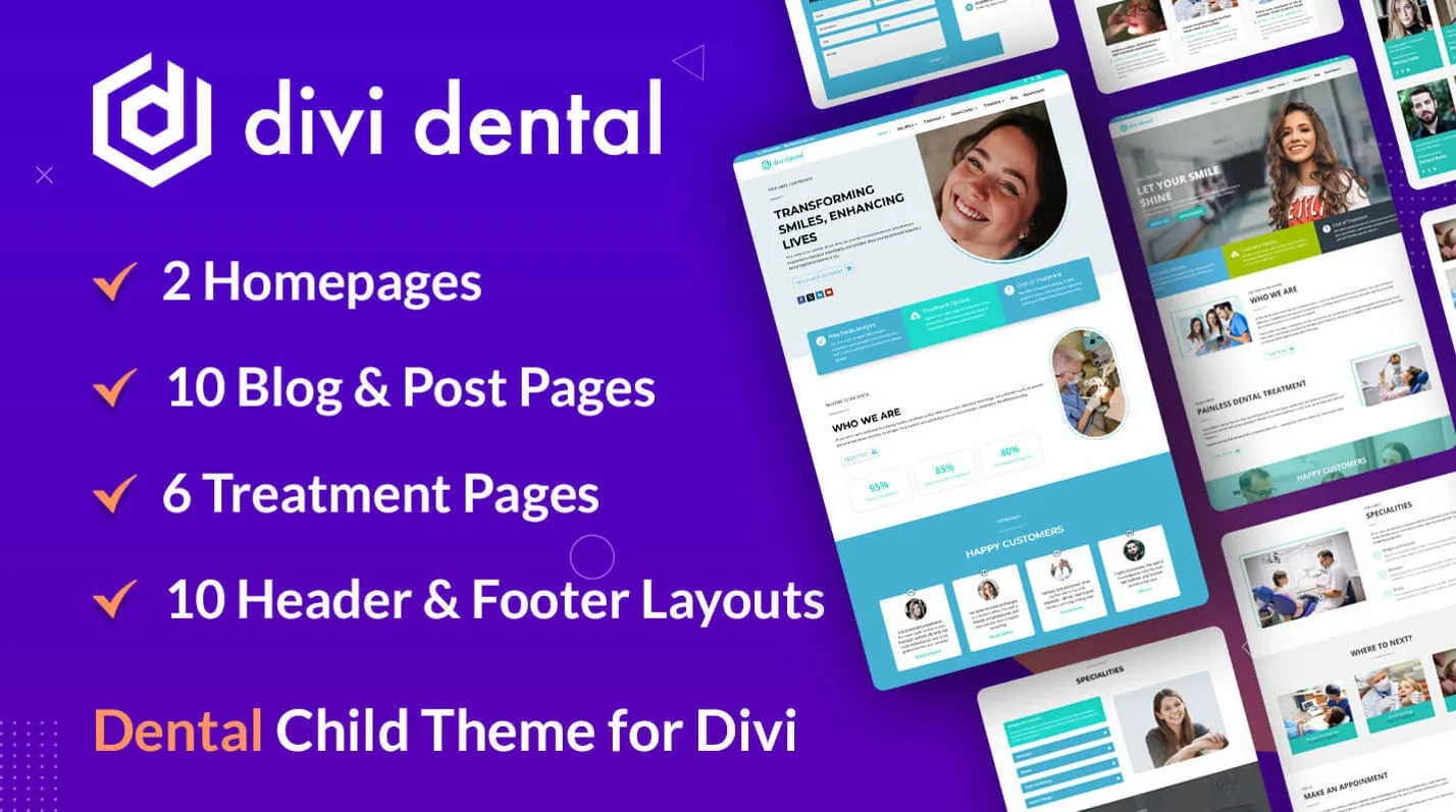 Modern Divi child theme for dental clinics—includes service pages, appointment forms, and a clean, professional design.