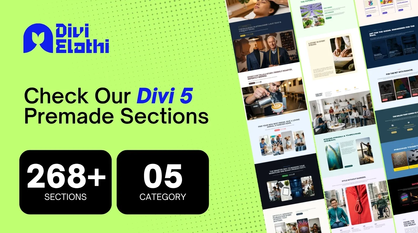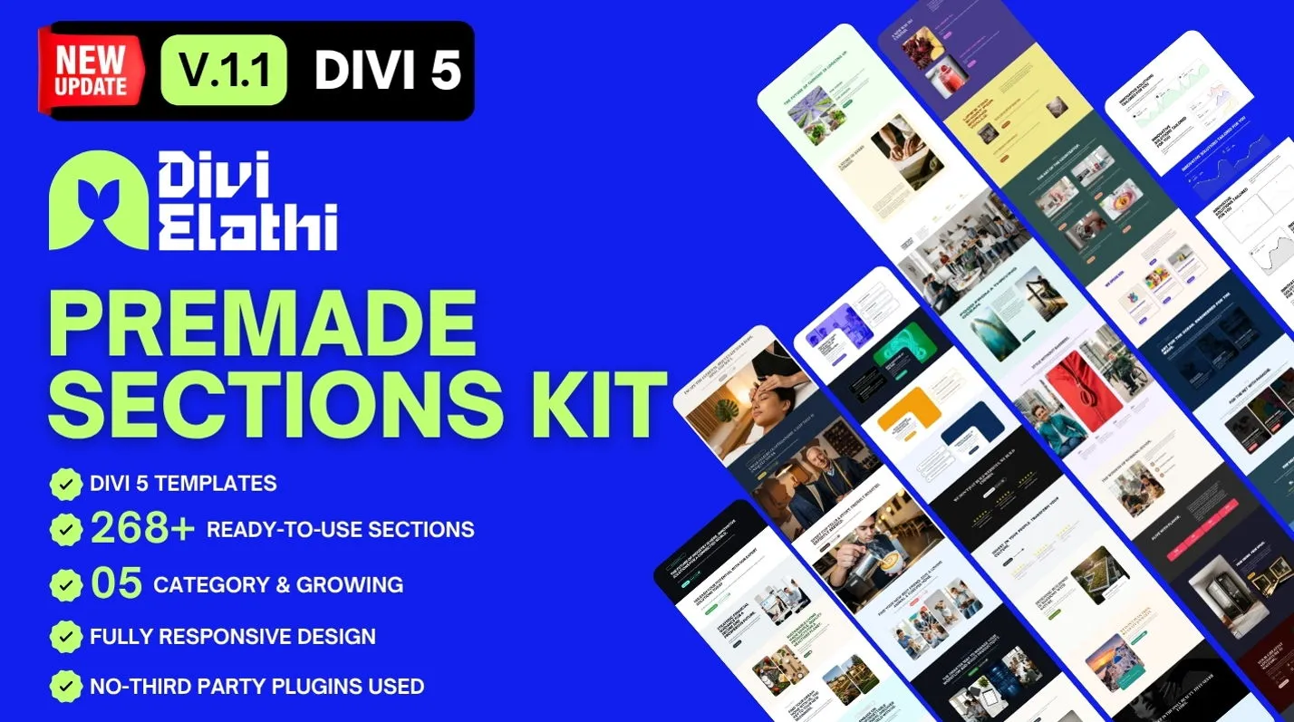 Unleash the true power of Divi 5 with the completely revamped Divi Elathi – Premade Sections Kit Version 1.1! We’ve evolved from basic layouts to a powerhouse design system featuring 268+ meticulously crafted section layouts. Version 1.1 isn’t just an update; it’s a transformation. We listened to your feedback and went beyond blank templates. Each section now boasts unique designs, thoughtful color palettes, and professional font pairings, making it easier than ever to build a stunning, high-converting website for any business. Stop Designing from Scratch. Start Building Masterpieces Instantly.