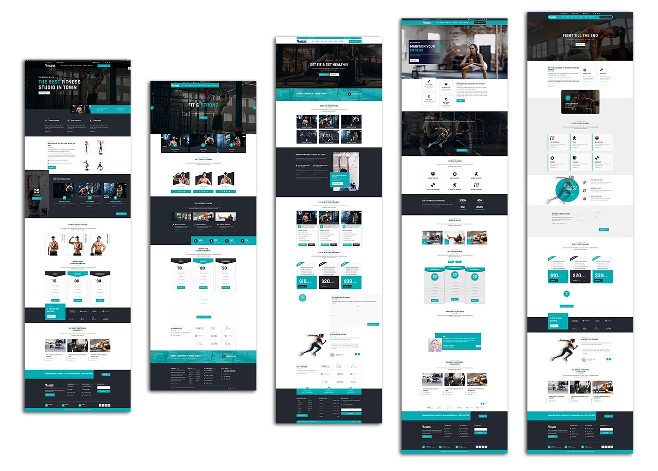 - Fitness-Focused Layouts: Includes homepage, classes, trainers, pricing, and contact pages.