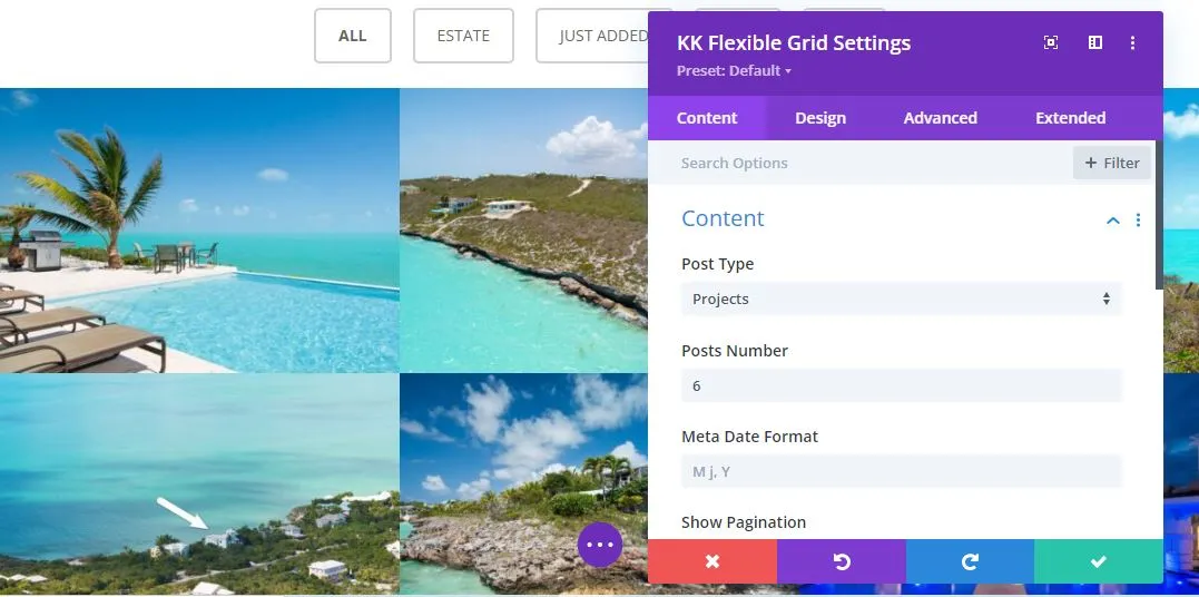 The Divi Flexible Grid plugin provides a Regular Module to be used in the Divi Page Builder. Design your grid while having control over the full assortment of visuals as presented in the Examples shown within the demo site. There are multiple possibilities with the controls and settings including using any Post Type.