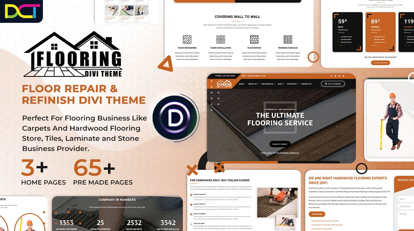 A professional Divi child theme tailored for flooring companies to showcase services, projects, and client testimonials.