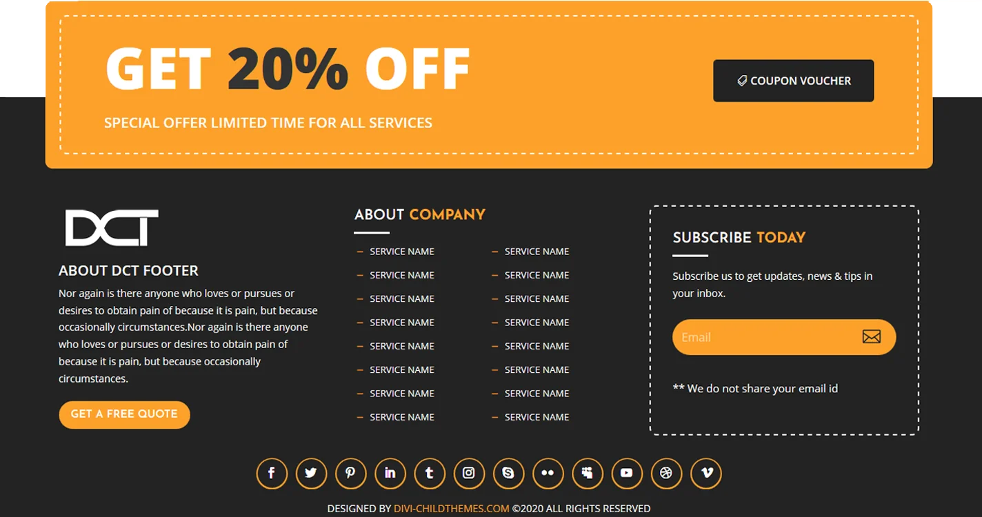 - Multiple Footer Designs: Choose from a variety of layout styles to match your brand.
