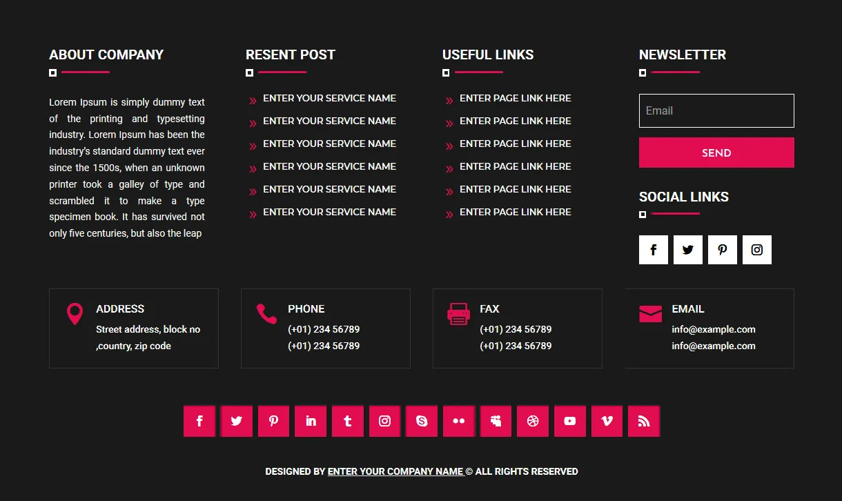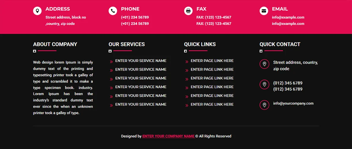 - Multiple Footer Designs: Includes a variety of footer styles for different website needs.