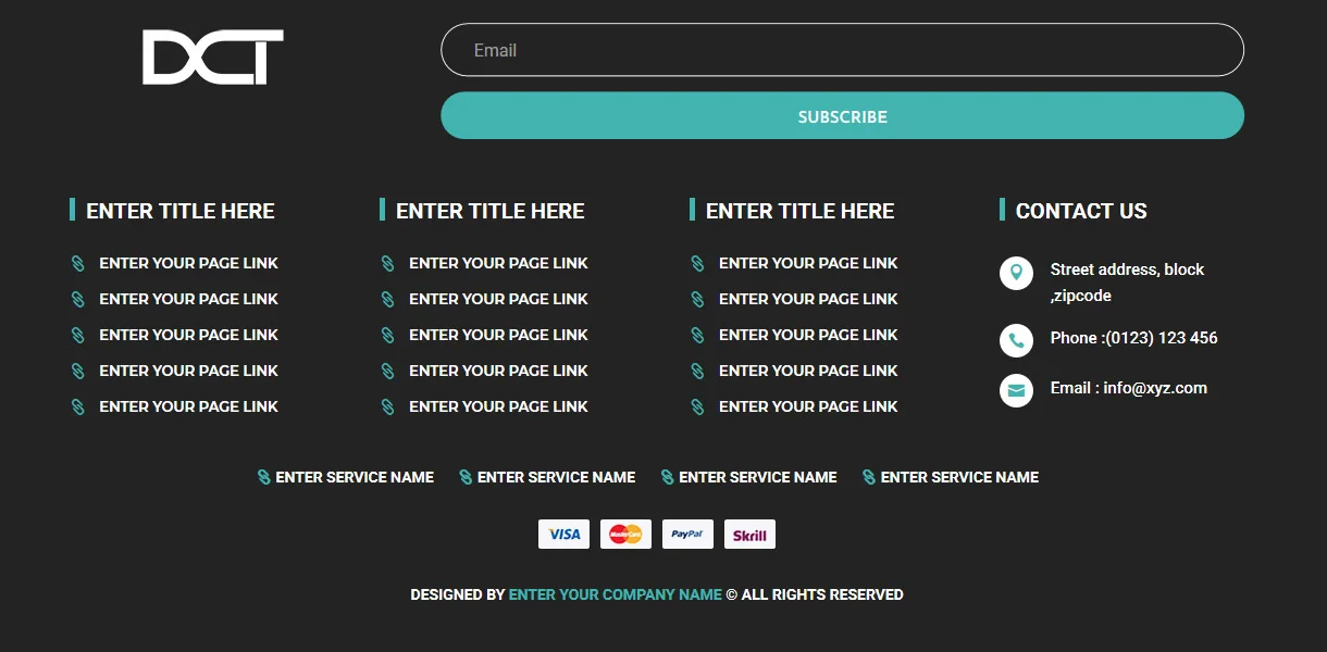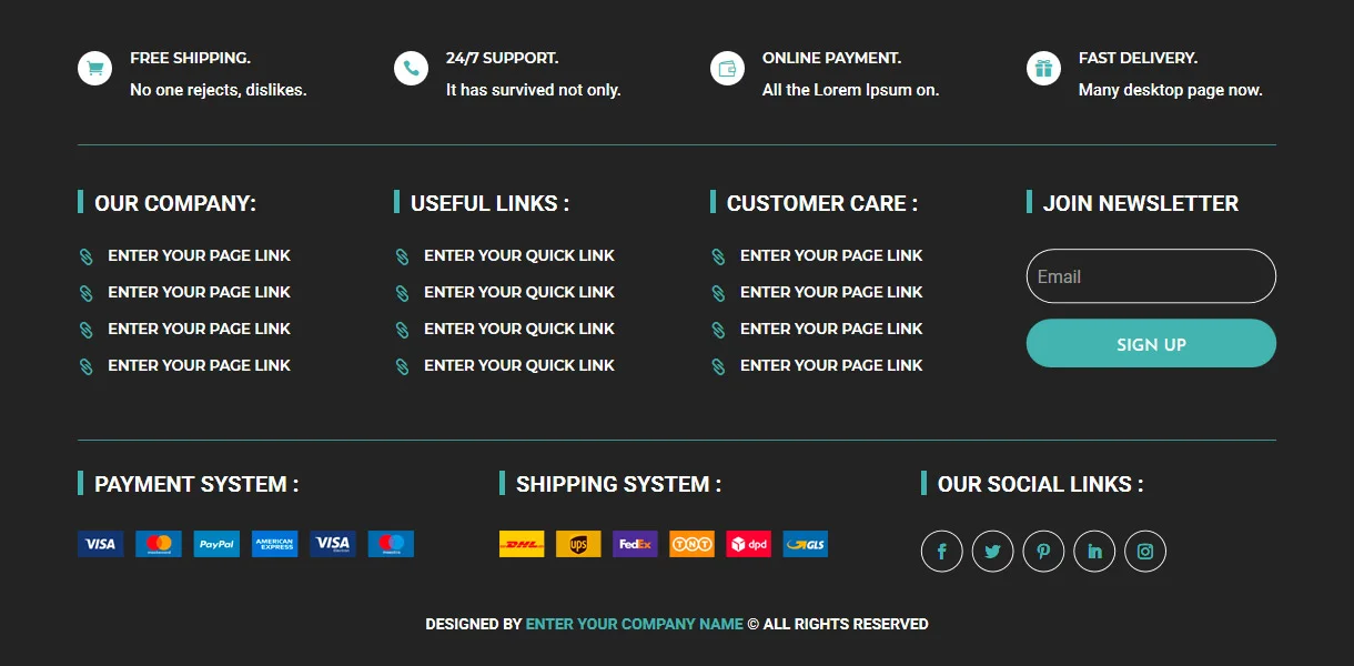 - 5 Unique Footer Designs: A variety of styles to suit different branding and website needs.