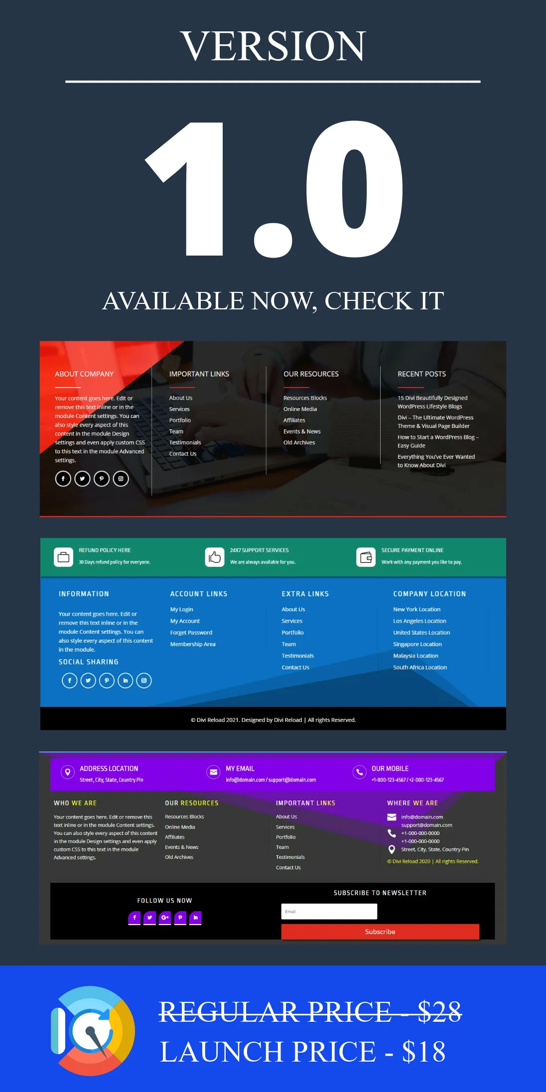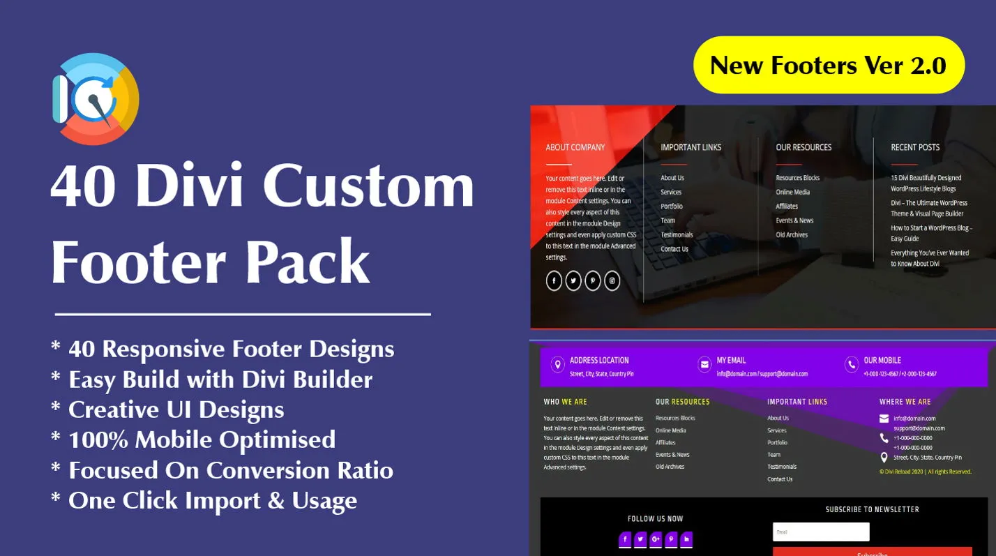 We are providing Modern, the Eye-Catchy, and Quality designed footer layouts for all. It will work perfectly with Divi Theme Builder with ease customization with no limitation. You can choose any custom footer layout design and instantly start customizing it without any issues, works with any kind of niche.
