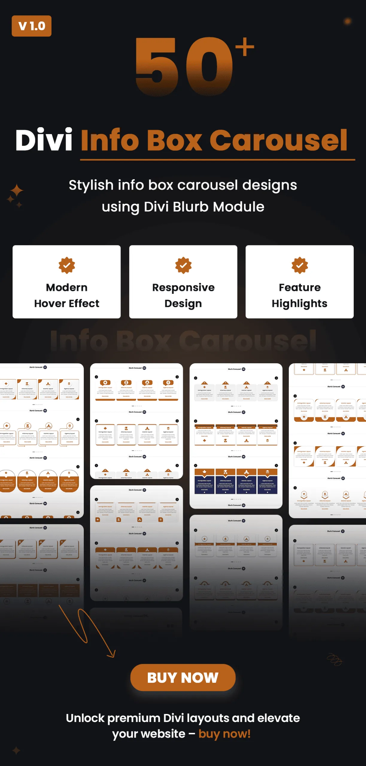 Divi Info Box Carousel Sections Pack – 50+ Interactive Sections