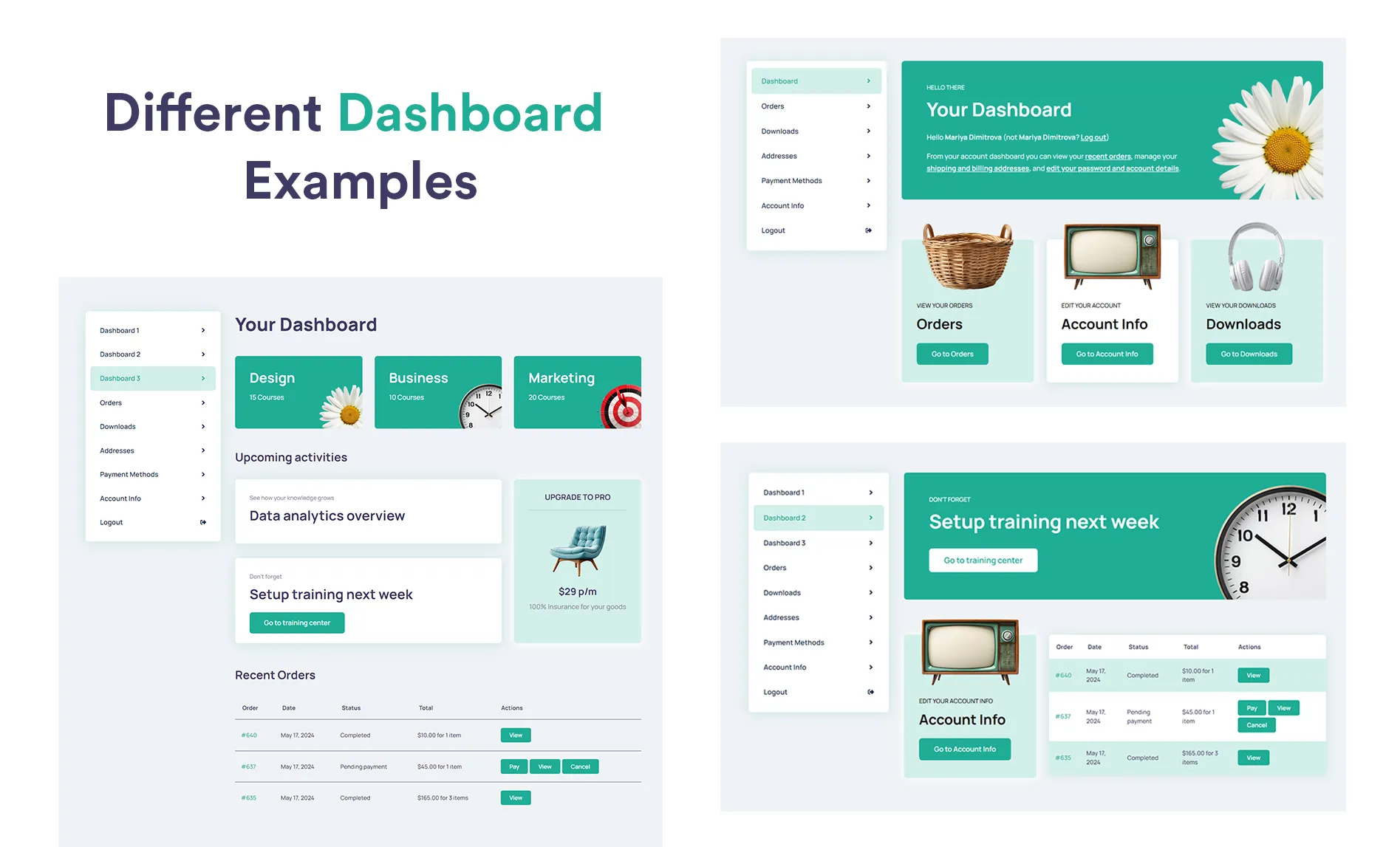 - WooCommerce Compatibility: Works with all standard WooCommerce account features.