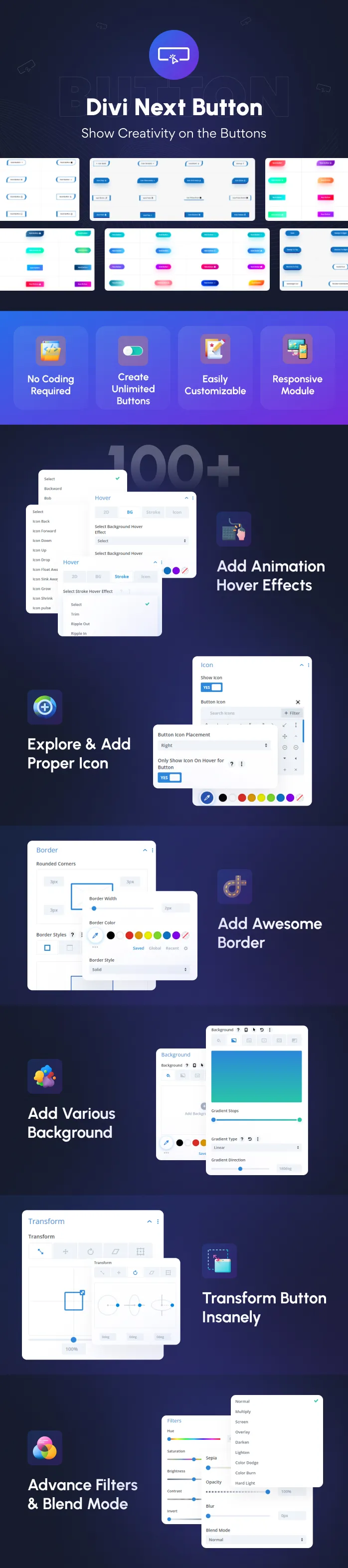 The Divi Next Button Module is a third-party extension for Divi that enhances your site’s call-to-action elements. It offers advanced button styling, hover animations, and layout flexibility—perfect for marketers, designers, and developers looking to create visually engaging buttons without custom code.