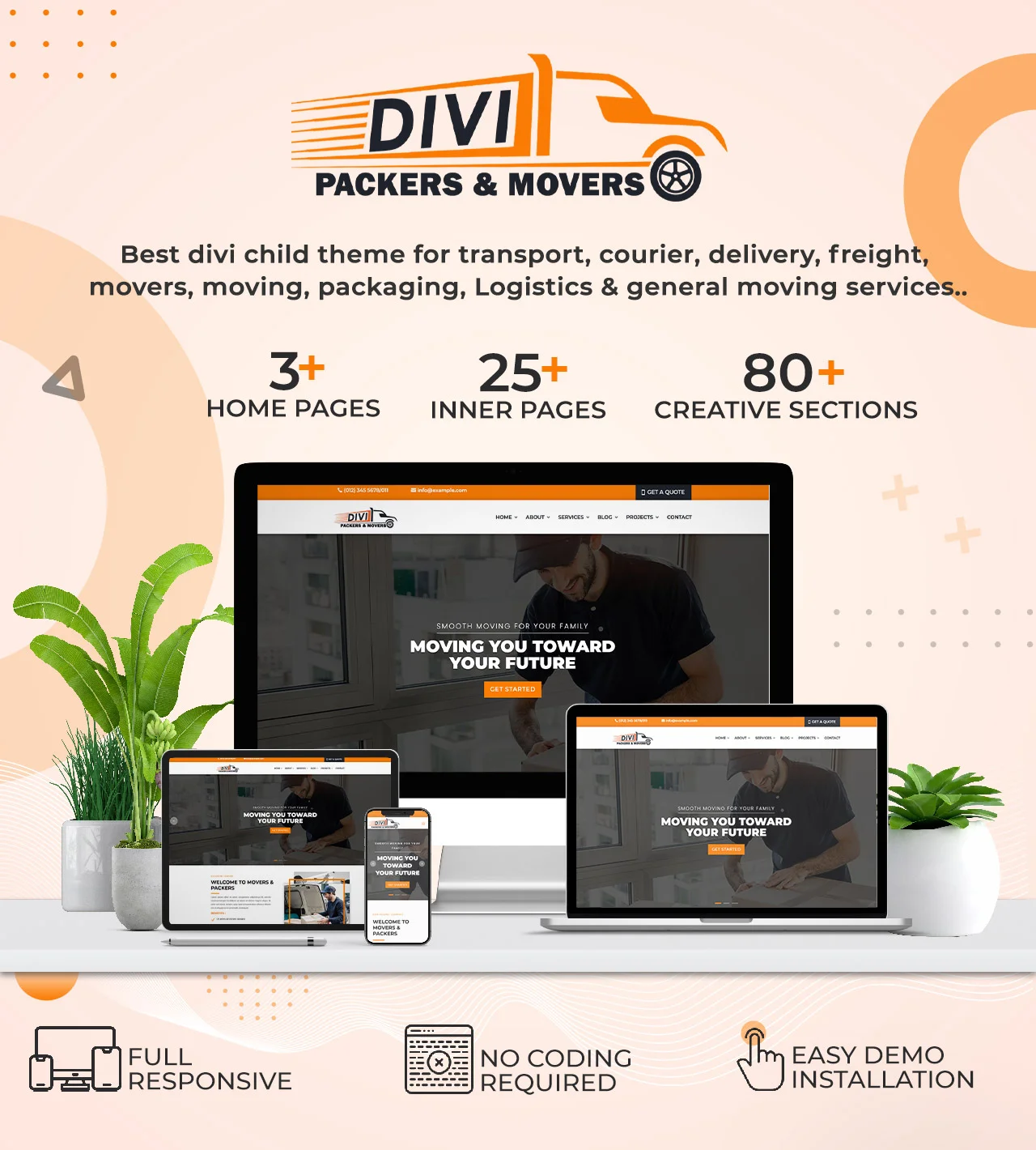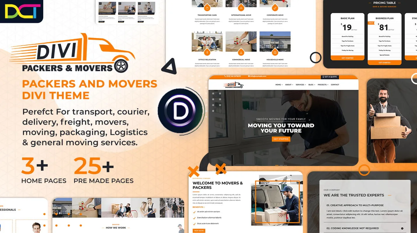 Best divi child theme for transport, courier, delivery, freight, movers, moving, packaging, Logistics & general moving services..