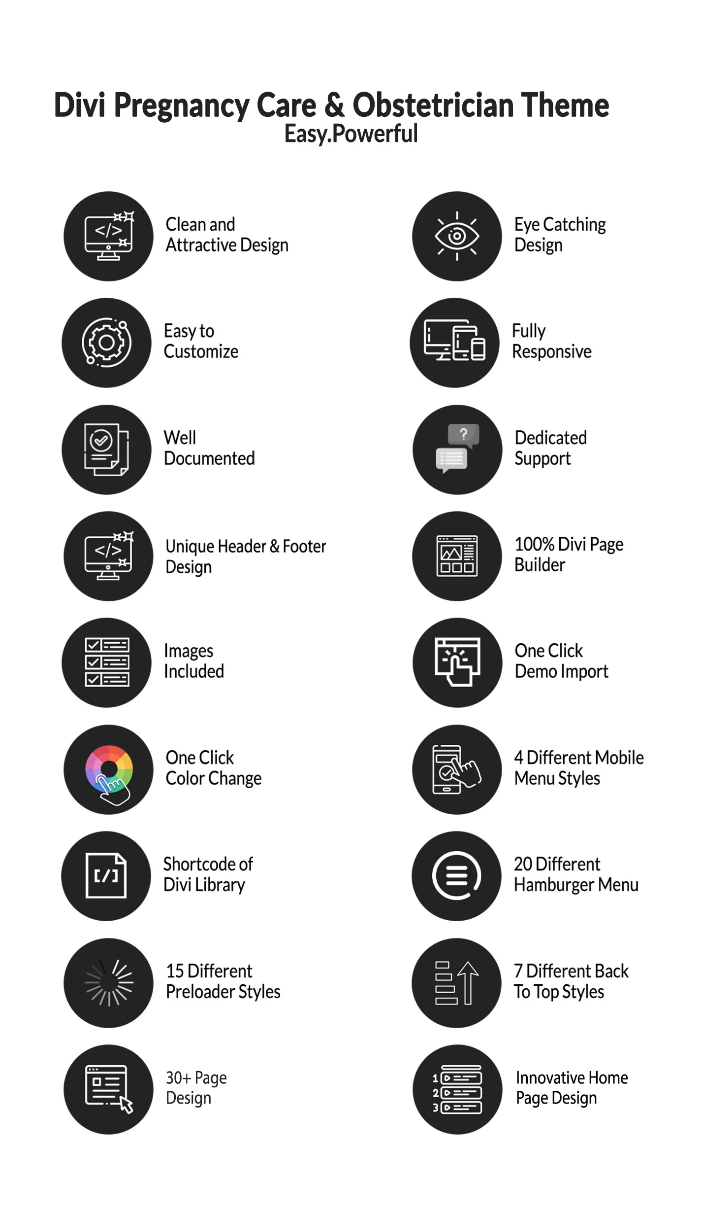 Elegant Divi child theme for pregnancy care and obstetrician websites with responsive design and unlimited usage.