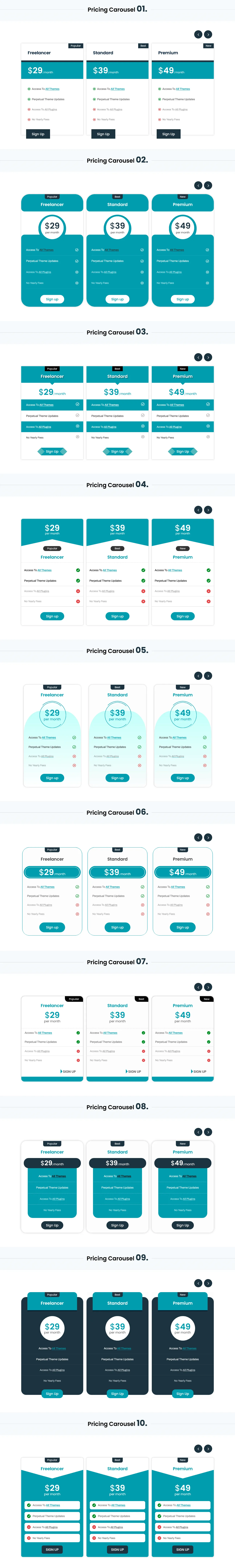 - Carousel Navigation: Rotate through pricing plans with smooth, interactive transitions.