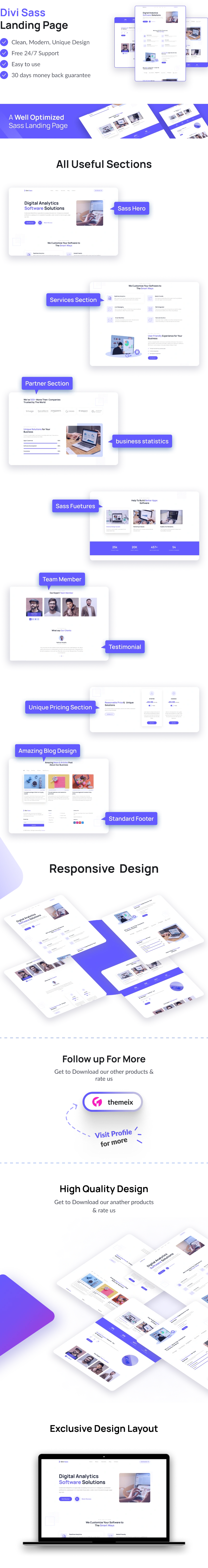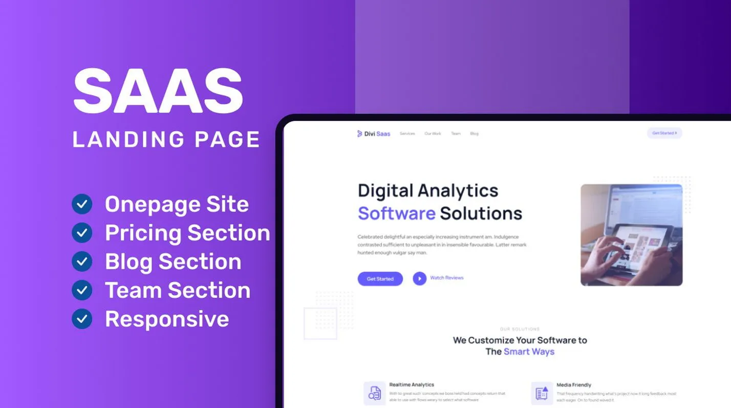 Divi SAAS Layout Pack is a Unique, Modern, Creative, Template Design suitable for SaaS software, agency, app, web app, app templates, business, Landing templates, product, landing, digital marketing, saas template, software landing, startup and simple design that can easily be adapted and used for a variety of similar niche websites.