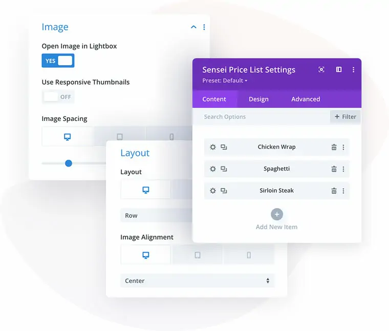 Create elegant, customizable price lists for products, services, or menus using Divi’s visual builder.