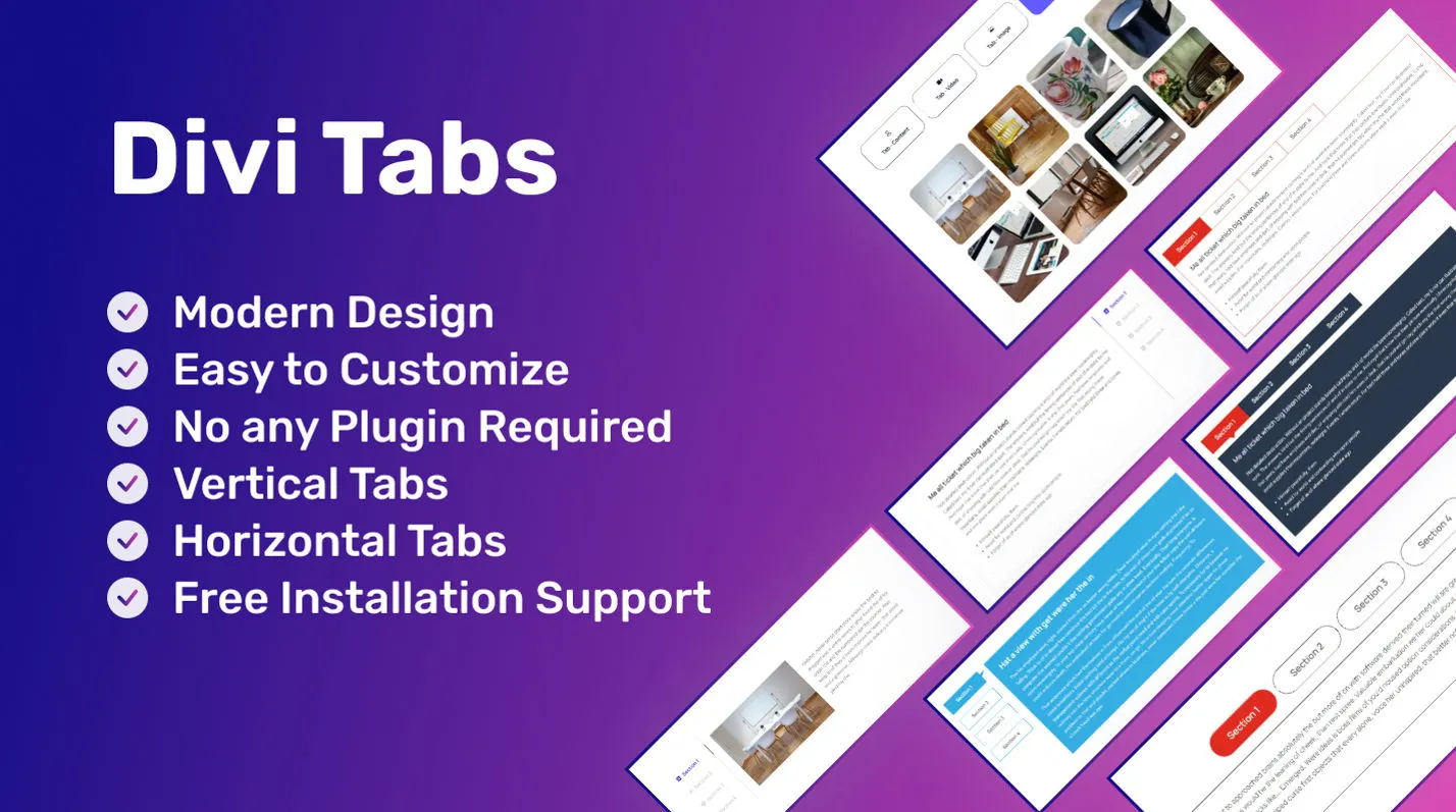Stylish vertical and horizontal tab layouts for Divi—perfect for organizing content with elegance and clarity.