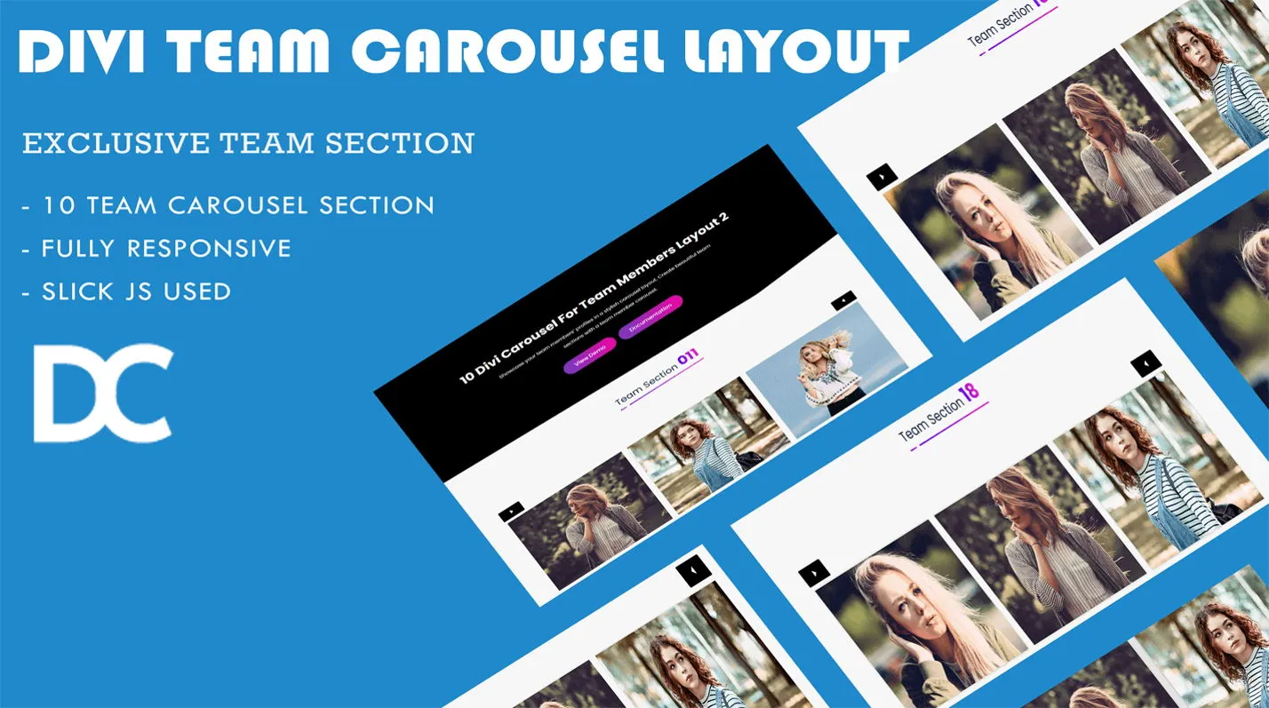 Create beautiful team sections with a team member carousel.