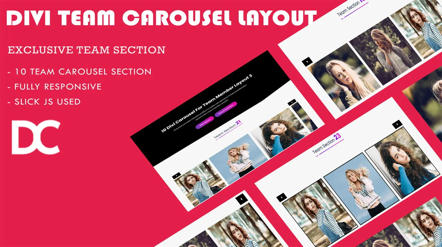 Responsive team carousel layout for Divi—ideal for showcasing team members with style and clarity.