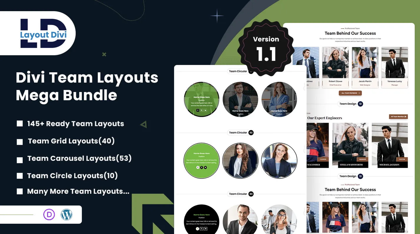 155+ Divi Team Layouts Pack – Creative, Carousel, List, Flip, Popup & More in One Bundle