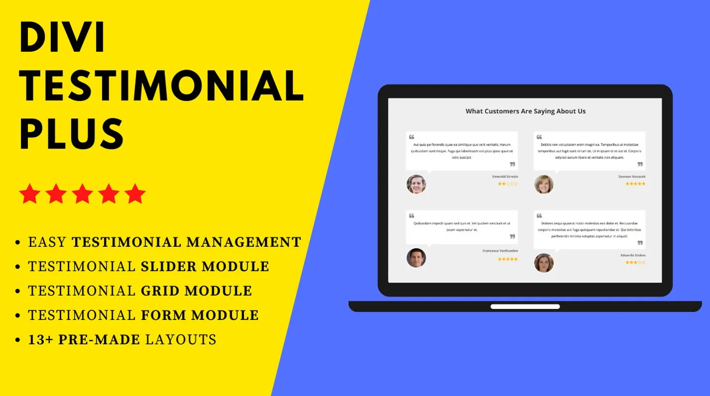 Advanced testimonial module for Divi with grid, slider, and SEO-friendly layouts—easy to customize and responsive.