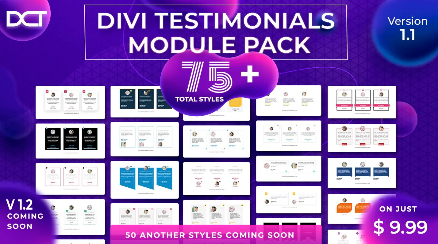 Purchase Divi Testimonials Module Pack Today and get Unlimited Access of 75 divi testimonials module designs access and all future updates !