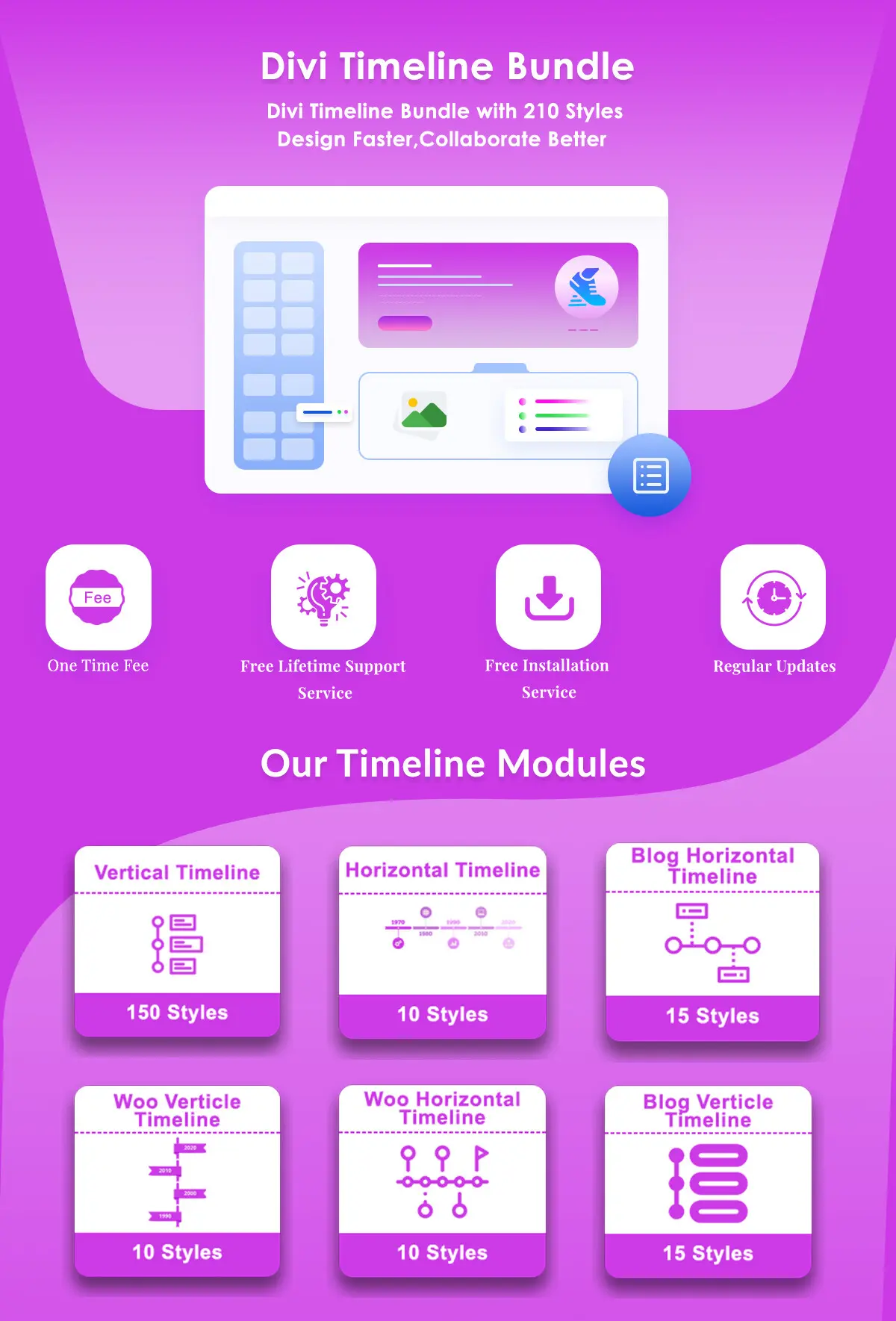 Create stunning timelines effortlessly with Divi Timeline Bundle.