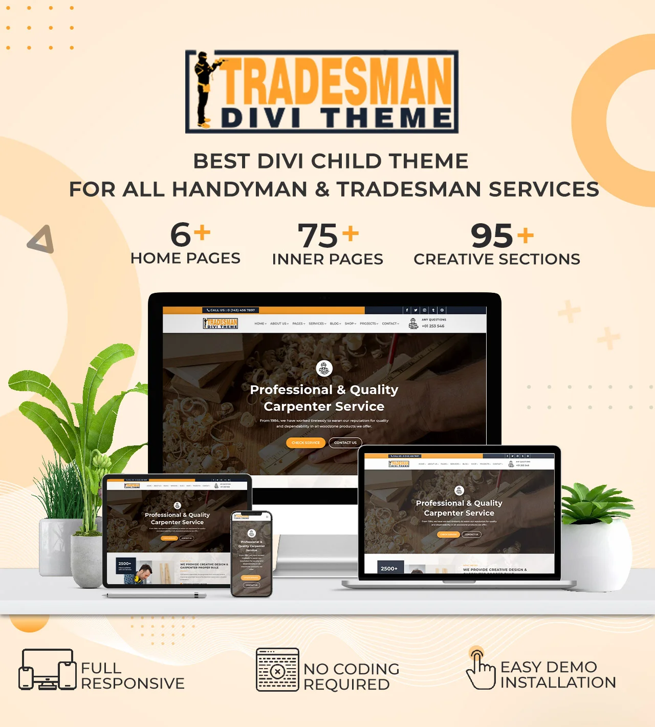These Divi Child Theme and it’s a superb one! Divi Tradesman Theme 50+ Pages Child Theme is a perfect website solution for All Craftsman. Best Option For Create Website For Renovation , Plumbing, Carpentry, Painting ,Electrician and other Handyman related services on your website on short of time.