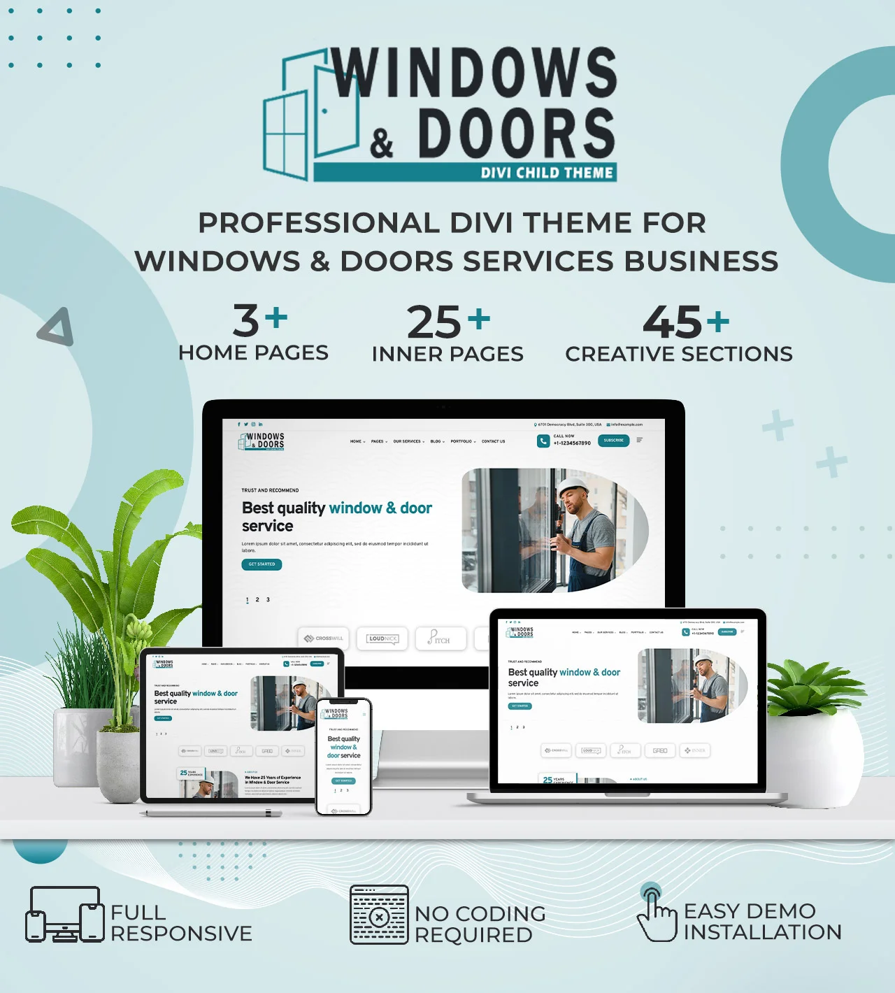 Multi Purpose 25+ Pre-Built Pages Best Divi Windows & Doors Services Theme