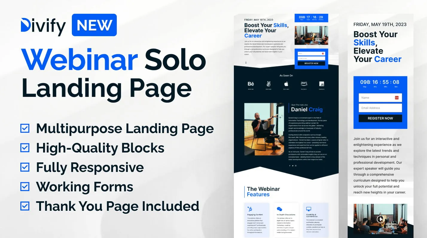 Host High-Converting Webinars with Divify Webinar Solo Landing Page