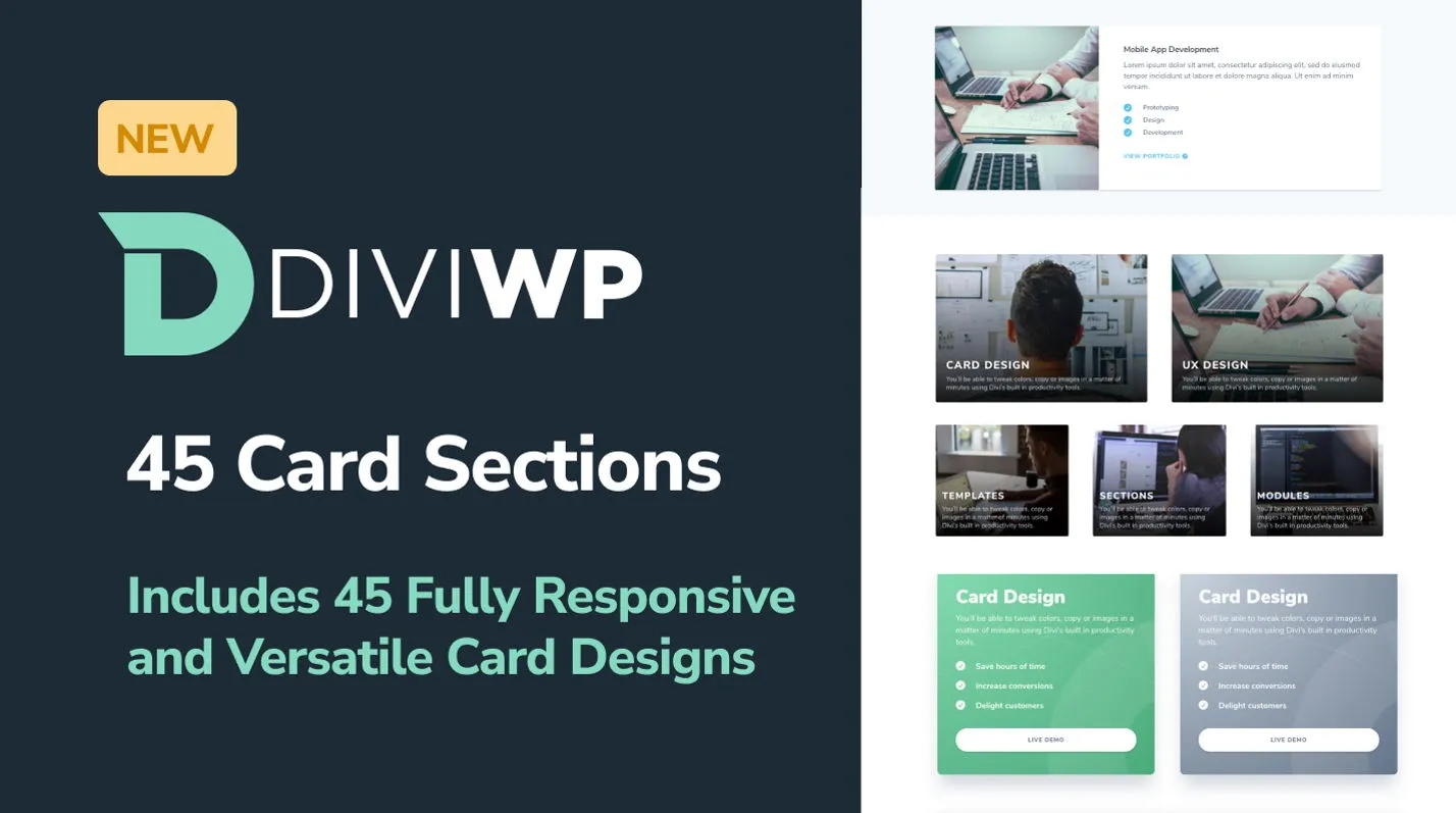 Professionally designed card sections for Divi, ideal for showcasing services, pricing, testimonials, and team bios.