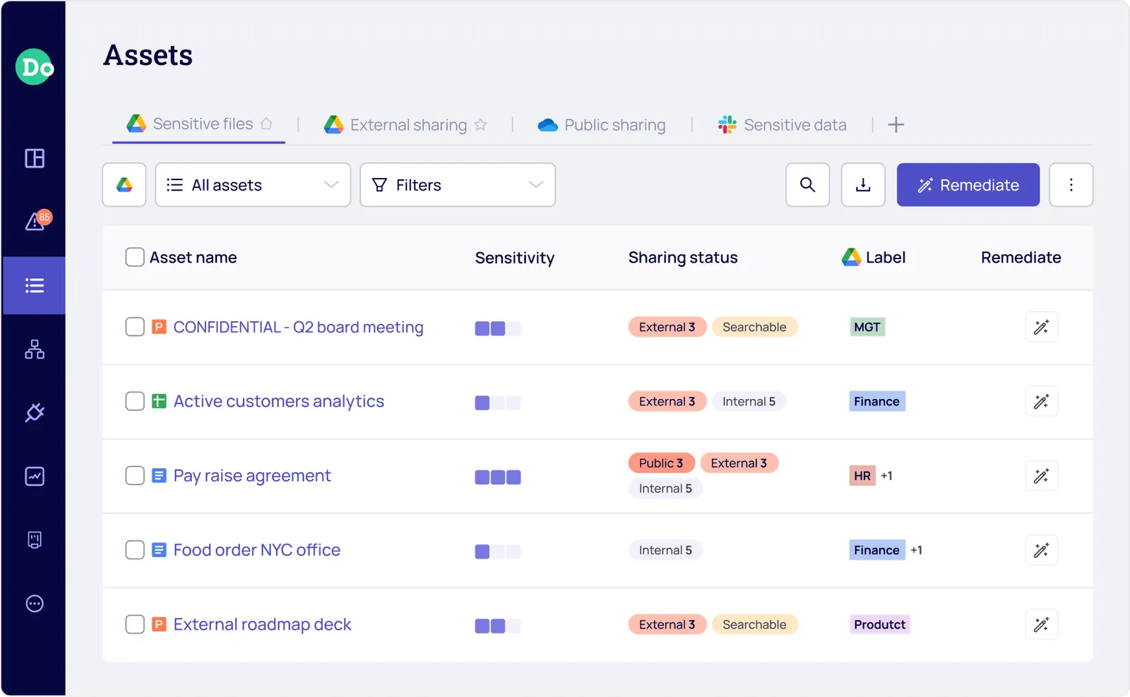 Automated Bulk Remediation Performs on-demand, large-scale remediation actions to clean up historical data exposure.