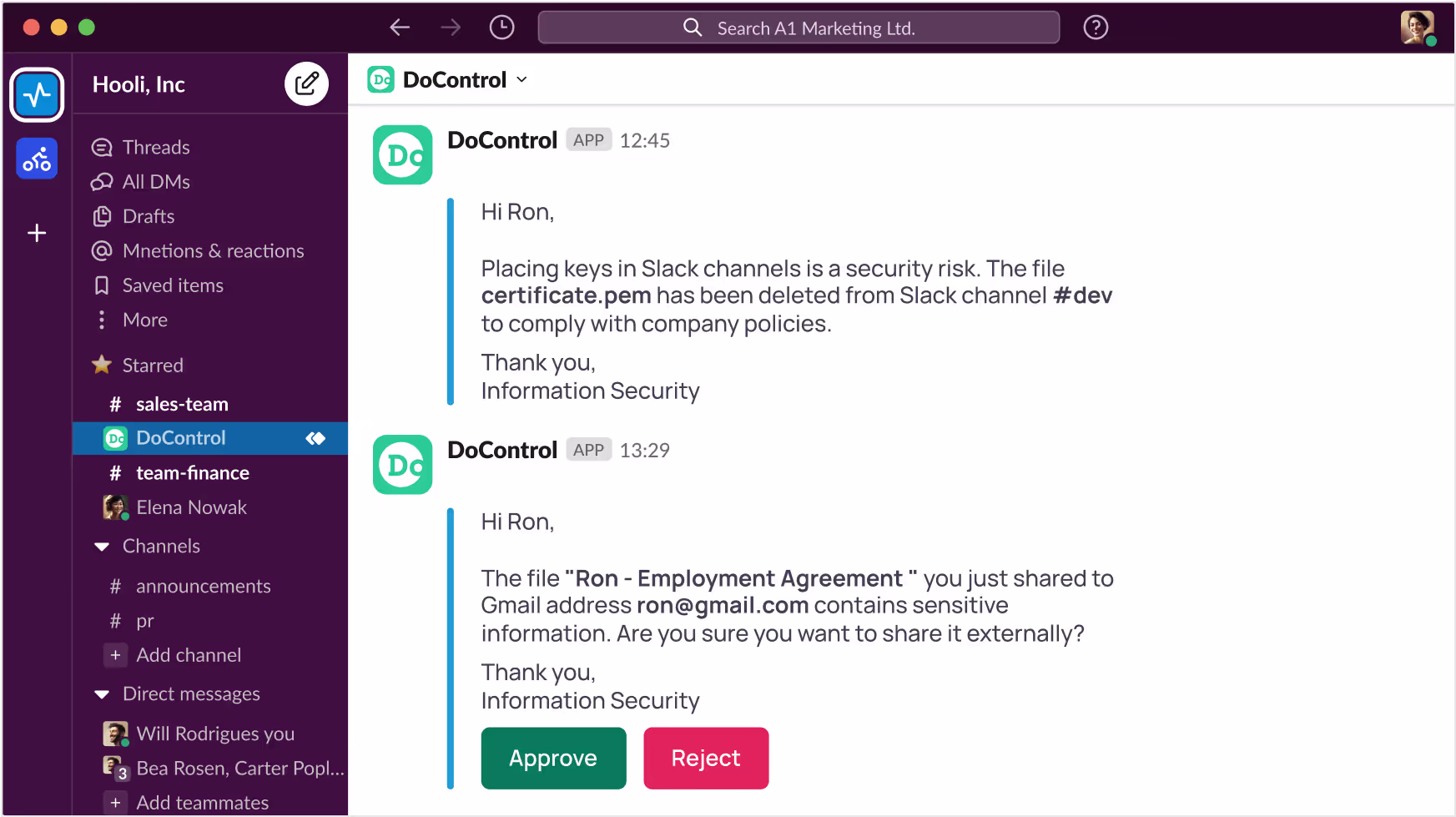 Employee Self-Remediation Empowers employees to address risky actions via Slack bot engagement.