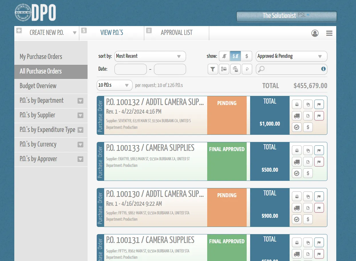 A fast and simple way to manage your purchasing flow. Maximize efficiency and safety with Digital Purchase Order (DPO), the cloud-based expense management solution tailored for the entertainment industry. Create and approve purchase orders instantly from anywhere, at any time. Whether you’re streamlining production processes or ensuring 24/7 access to vital information, DPO is your tool for saving time and enhancing productivity.