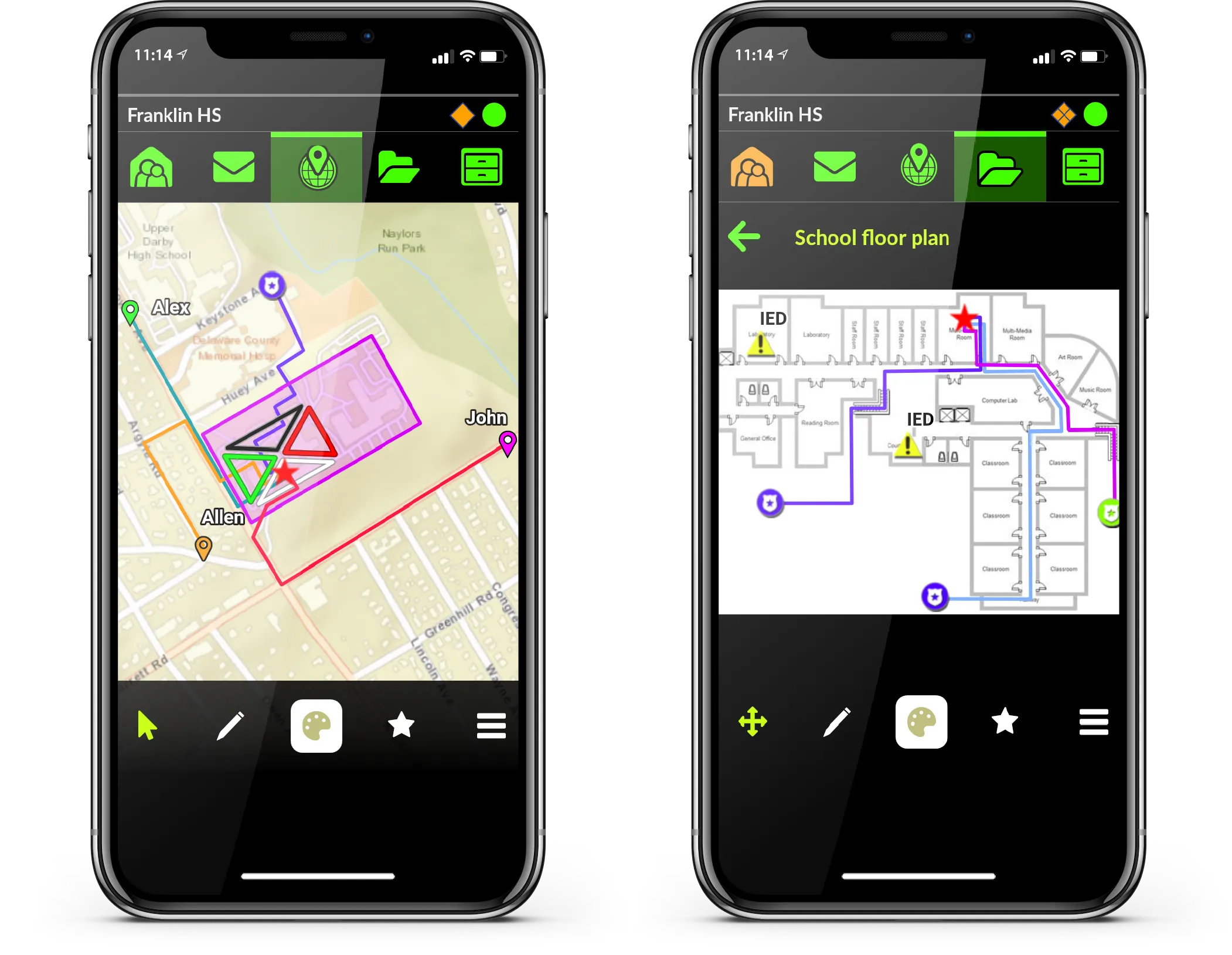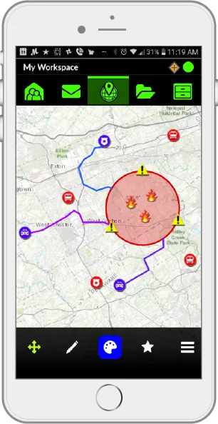 - Tactical Whiteboarding: Contribute to a shared operating picture using customizable annotation tools.