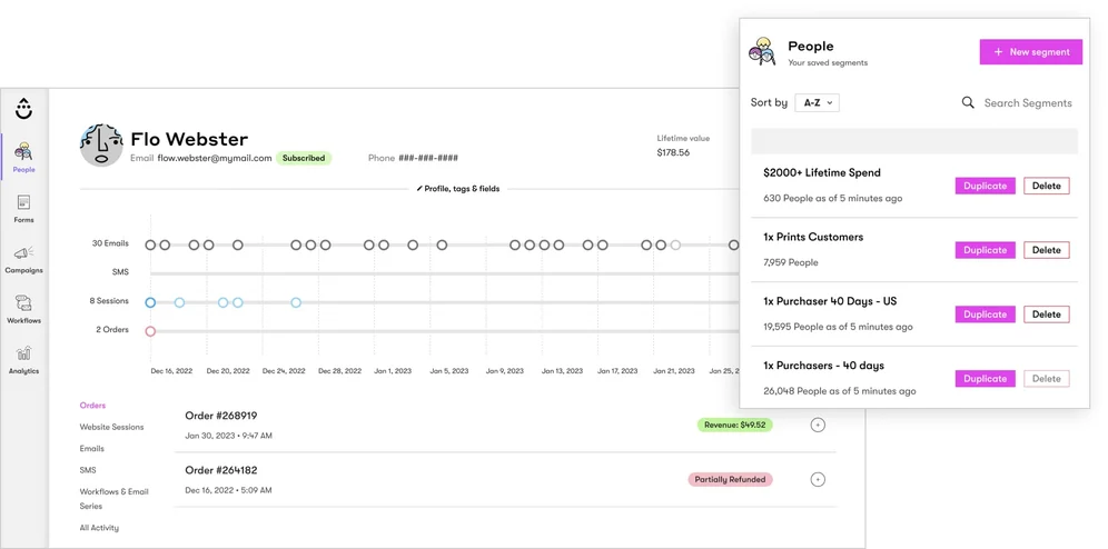 - Segmentation: Build behavioral and life cycle segments that dynamically update, enabling you to send relevant, targeted emails to subscribers and customers. Drip customers using segments earn 5x more revenue than those who don’t.