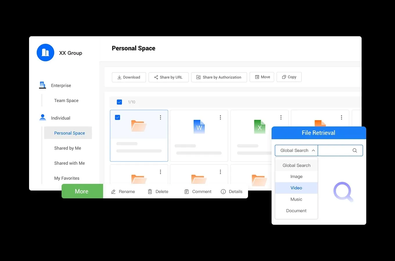 Drive and Photo Service allows you to store and manage important enterprise files in a centralized manner. You can add, delete, modify, and search for files in a variety of formats. You can manage the files in the same way as you do on local computers. This implements non-differentiated management of local and cloud files. Centralized Storage Drive and Photo Service provides a series of file management capabilities that allow you to upload and download files, create new files and folders, move, copy, delete, and sort files, add files to favorites, and add comments to files. Online Preview Drive and Photo Service supports online preview for more than a dozen file formats (such as documents, images, audio, and videos). File Retrieval Drive and Photo Service allows you to search for files using conditions (such as the file name, type, and content). It also allows you to sort files in a variety of ways to find the files you want easily. Recycle Bin Drive and Photo Service provides the recycle bin feature that retains deleted files for 90 days by default. After 90 days, the files are cleared automatically.