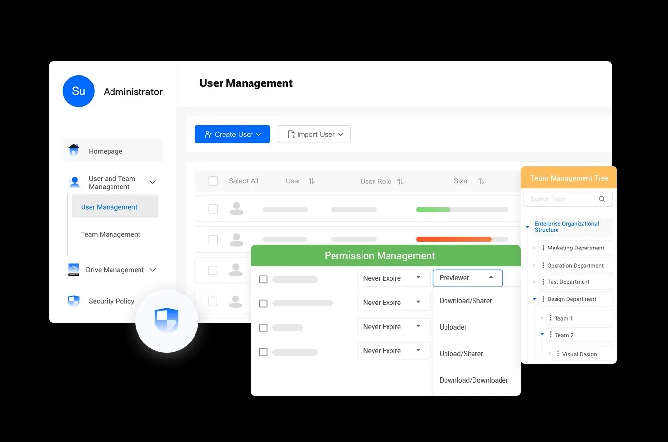 Based on the underlying storage of Alibaba Cloud, Drive and Photo Service provides enterprise-class security protection. It is equipped with flexible and multi-dimensional permission logic and allows you to trace historical operations. Drive and Photo Service promises an SLA of 99.9% availability and 99.999999999999% (12 nines) durability. Log Audit Drive and Photo Service records the trails of user operations and allows you to query and export logs online. Encryption Protection Drive and Photo Service provides enterprise-class multi-level security protection based on the underlying storage of Alibaba Cloud. It supports encrypted transfer, encrypted storage, and multiple authentication modes. Multi-Level Administrator System Drive and Photo Service supports super administrators, drive administrators, and team administrators to implement hierarchical management based on different job roles in enterprises. Team Management Drive and Photo Service allows you to manage a team based on its organizational structure. You can add, delete, and view the team space quota and manage team members.