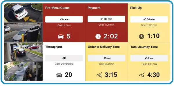 Drive-Thru Insights uses AI and existing cameras to deliver real-time and historical data that improves customer satisfaction, reduces wait times, and lowers operational costs—without requiring in-ground sensors or hardware upgrades. It helps optimize drive-thru performance by identifying bottlenecks and streamlining operations.